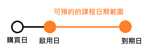 The range of class dates available for booking by the customer purchased pass is from the activation date to the expiration date.