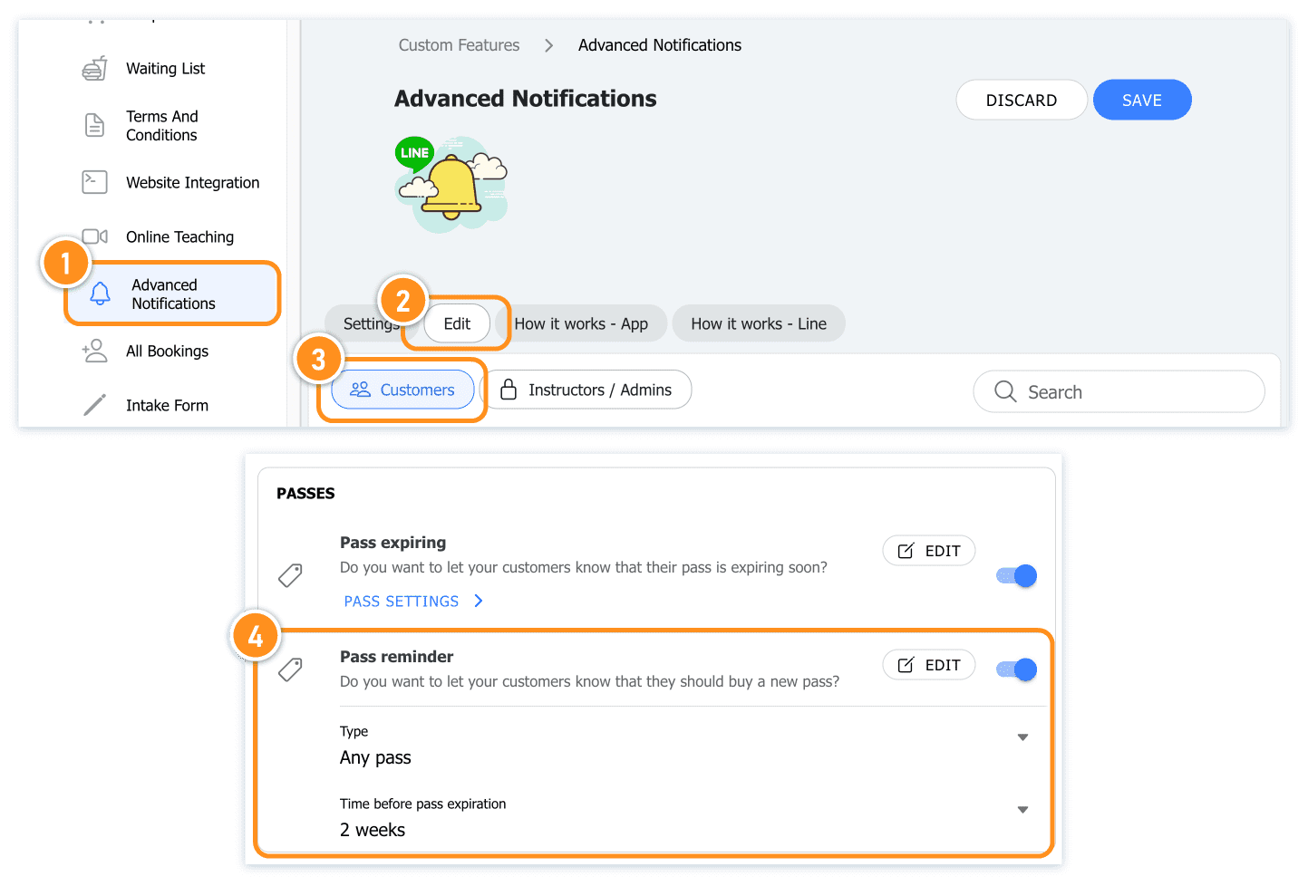 Example: Kiki bought a 10-class Yoga pass in January and hasn't finished using it yet. In March, she bought another 10-class Yoga pass during a studio promotion. Enabling this setting will cause the system to send the reminder only for the pass purchased in March. - Last purchased pass (same type)