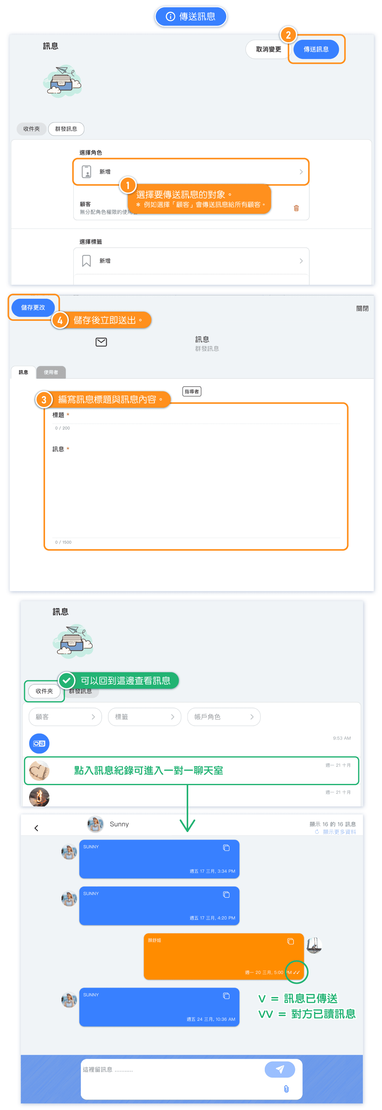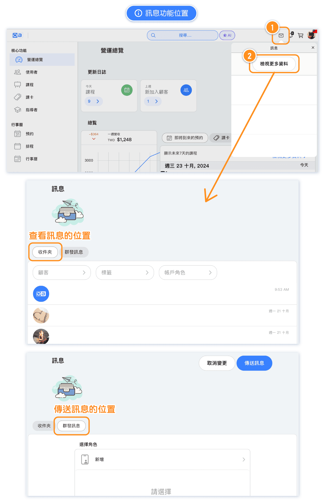 - Allow customers to receive messages from admins or instructors. (Cannot send messages)