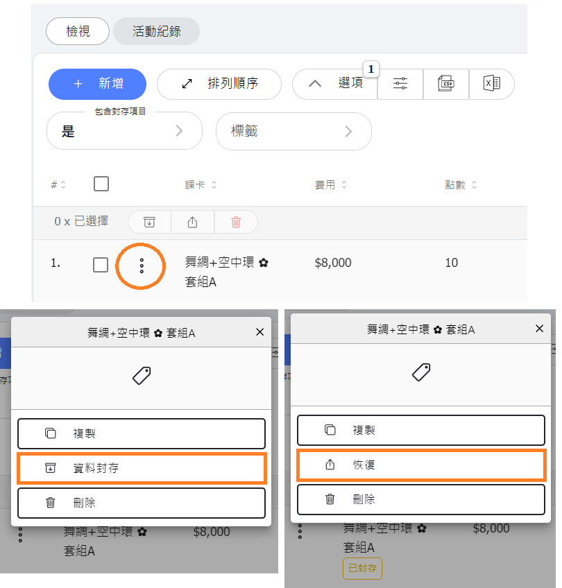 When you need to stop selling, you can archive the pass, making it hidden from the customer's view. After archiving, if you want to use this pass for the next period (September-October), you only need to clear the previous bindings, add the new courses for September-October, and unarchive (restore) the pass when you are ready to sell it again.