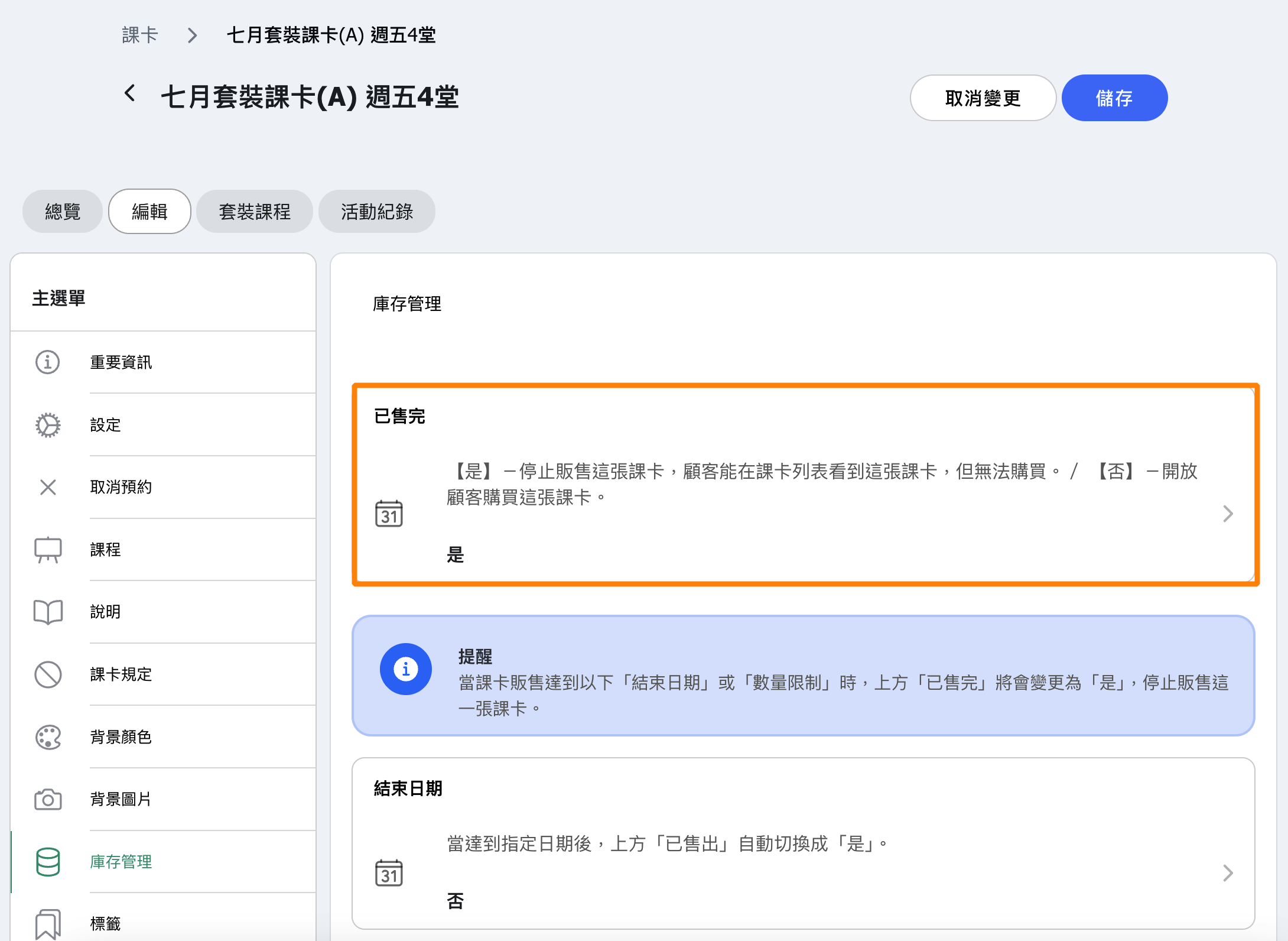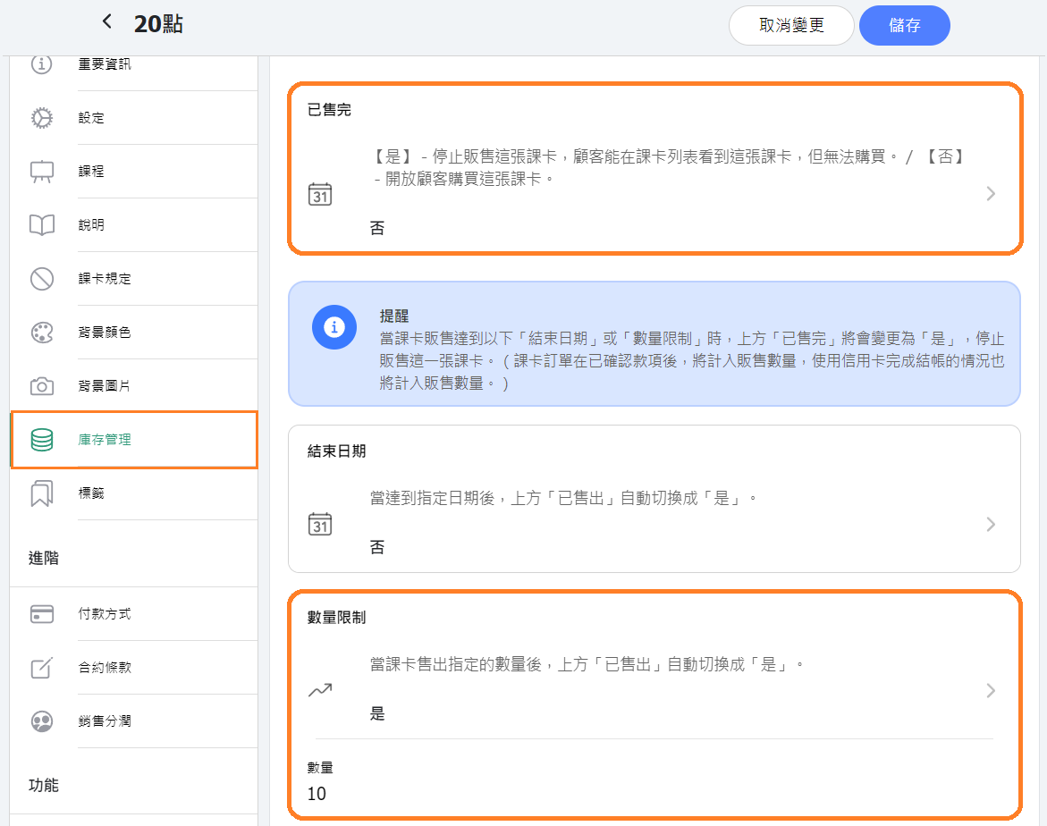 - Additionally, if the number of passes sold reaches the quantity limit, the inventory management "Sold Out" status will automatically switch to "Yes". When you want to reopen sales next time, besides adjusting the "Limit Number", remember to change the "Sold Out" setting to "No" to remove the sold-out status and reopen the pass for customer purchase.