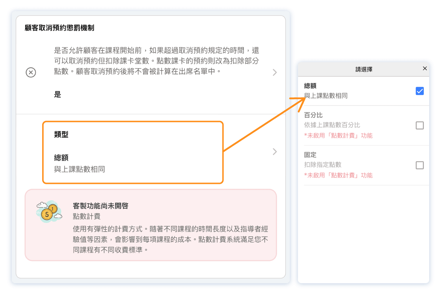 Penalty Cancellation: During this period, customers canceling their bookings will result in no return of sessions/points or only a partial refund of points, based on the business’s setting.