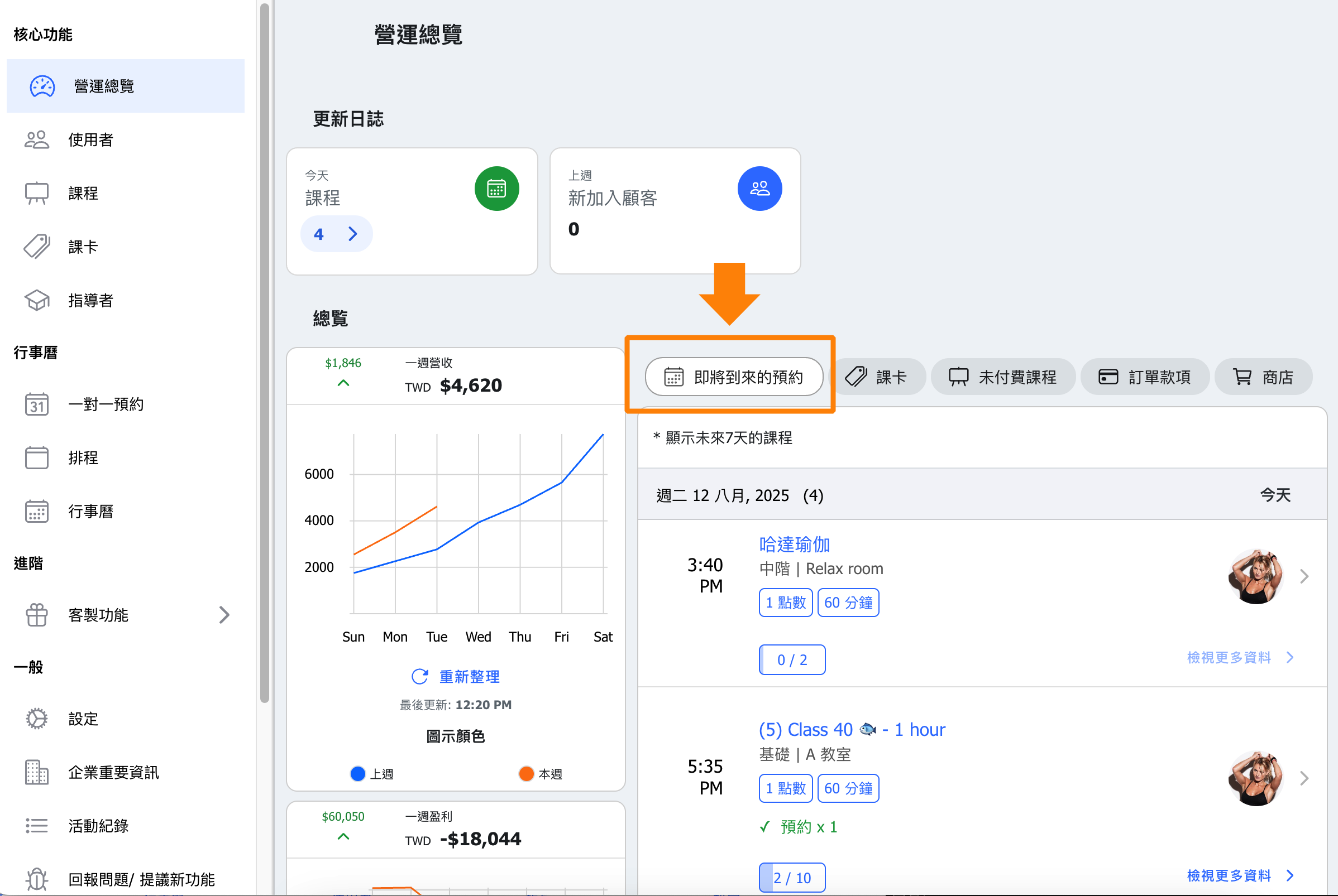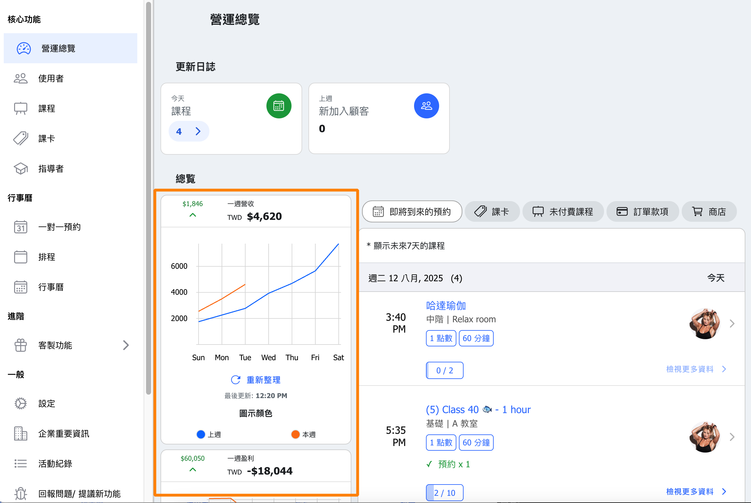 Data is presented intuitively, enabling managers to quickly grasp weekly revenue status and customer booking activity, supporting timely decision-making.