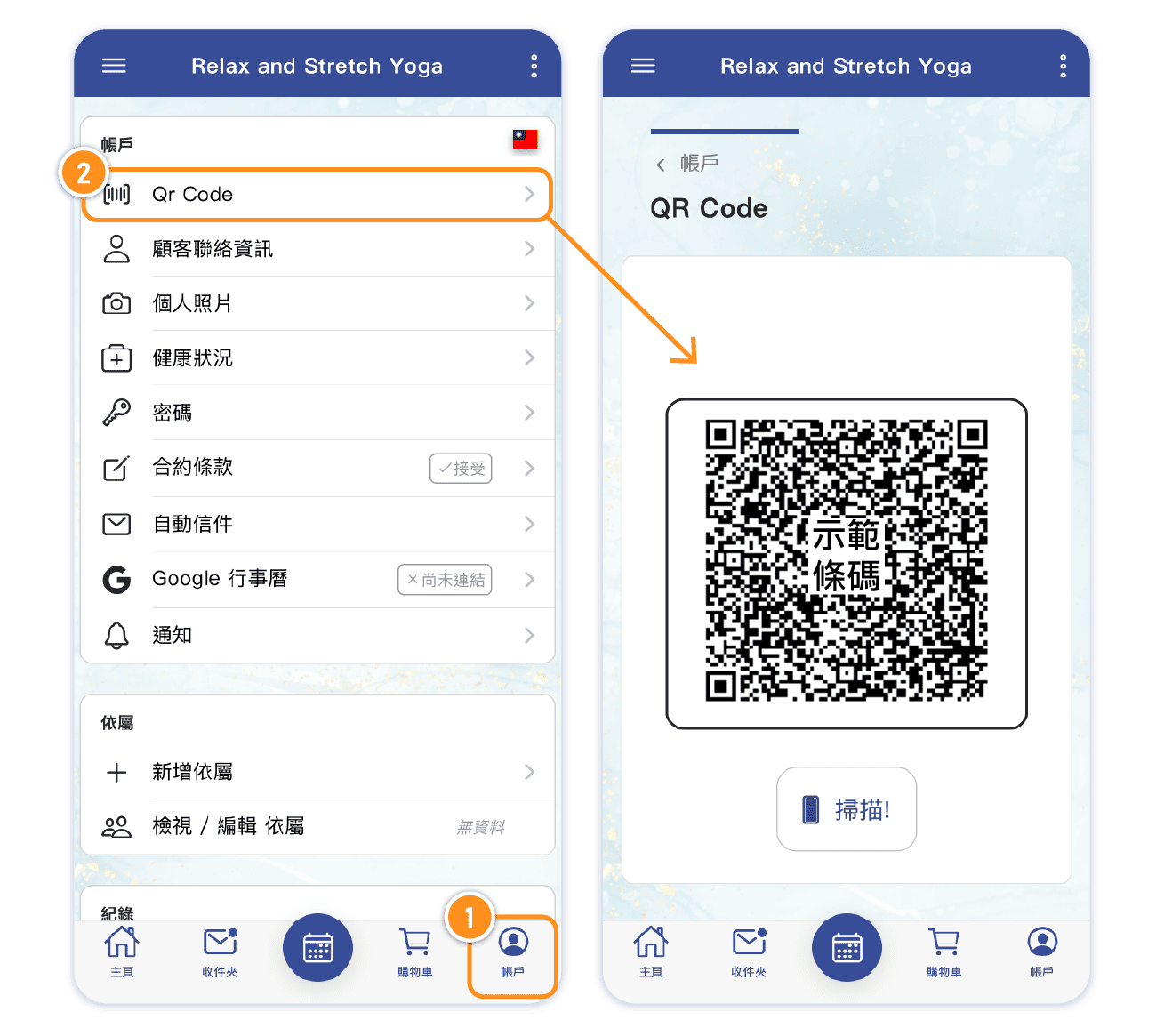 Customers enter by scanning their personal account QR code in the system.