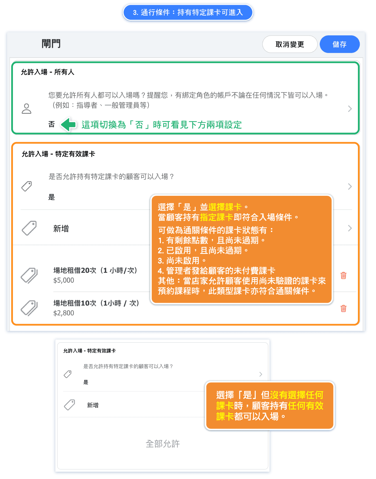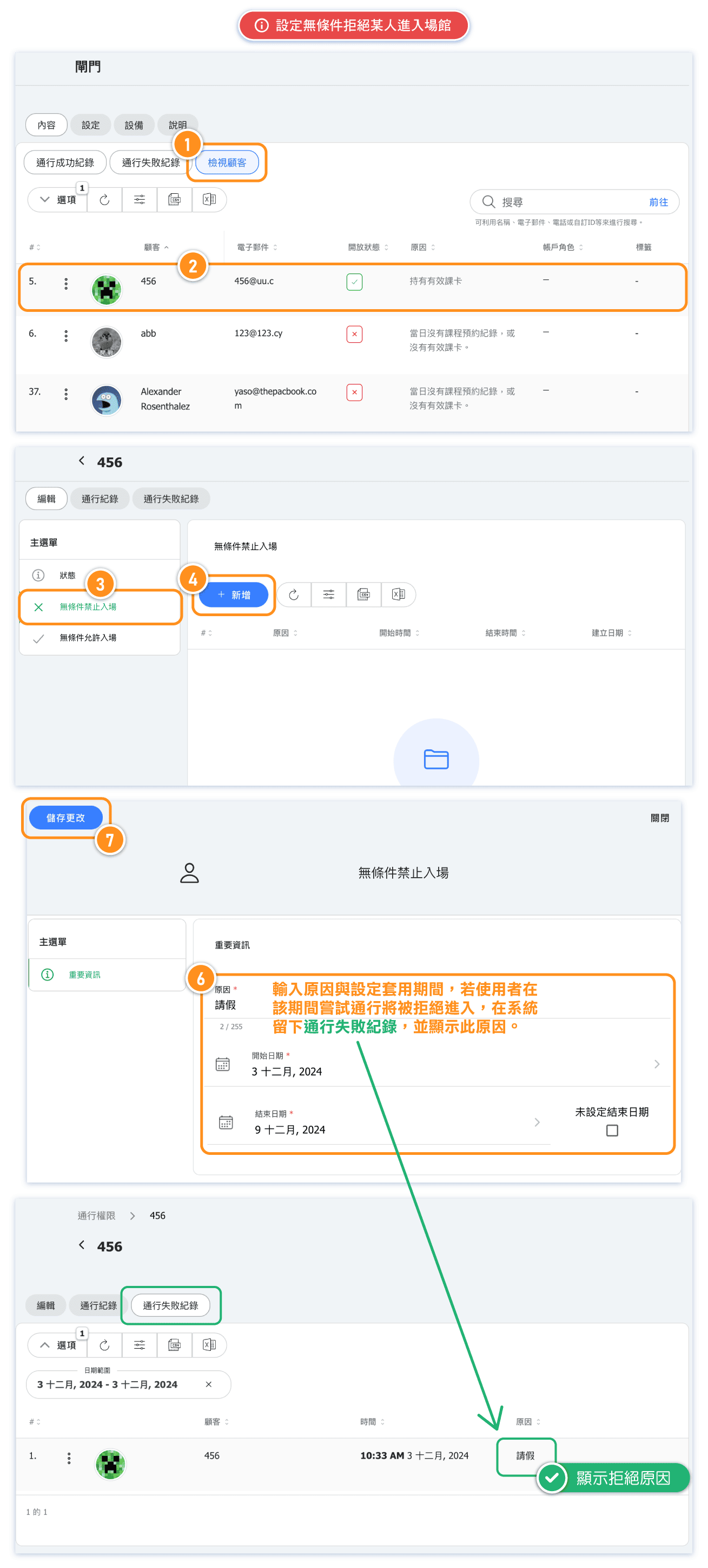A3: No. The "Explicit Deny" status takes precedence over any access conditions. Once set, the customer will not be able to enter the venue, regardless of whether they hold an active pass or have a reservation for the day.