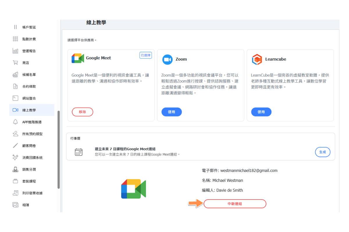 Note: Changing providers affects all future online classes. Any existing meeting links from the old provider will no longer work, so it's best to switch between class sessions rather than during an active schedule.