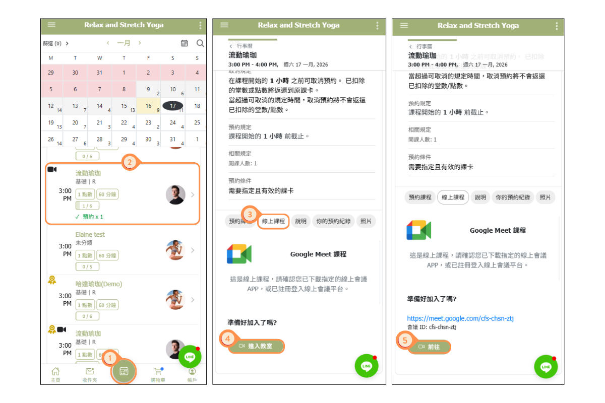 Important: The join option only appears for students who have a valid reservation for that class. Students without a booking cannot access the online session.