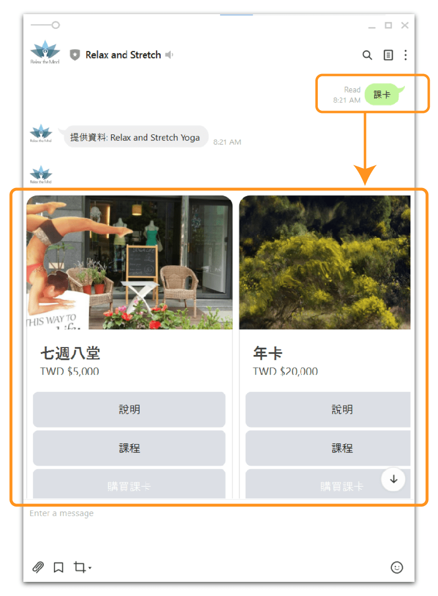 💡 Due to LINE's lack of support for rich menus on its desktop version, if the store wants to provide customers with the option to use LINE on their computers, they should include keywords in the "Bot Greeting Message." Below are the available keywords and their corresponding content: