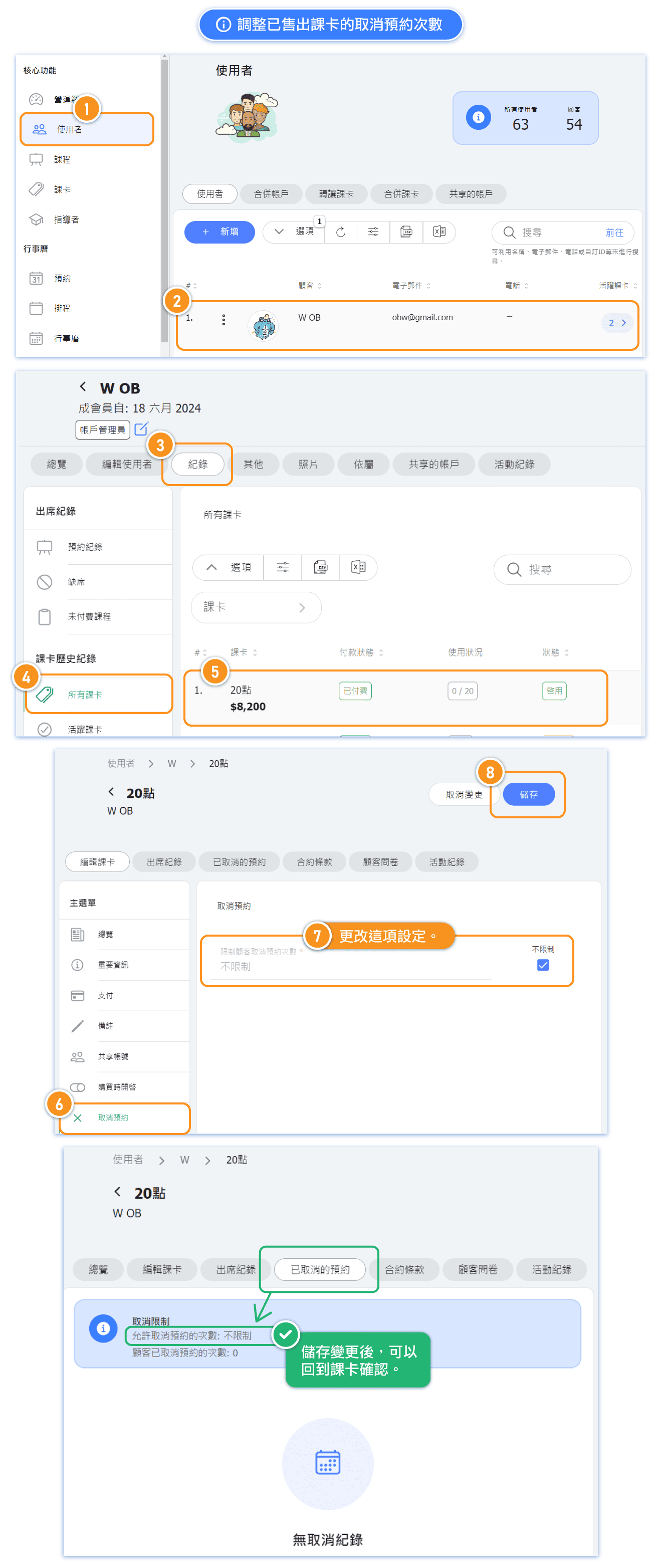 Tip: Setting this value to 0 will prevent customers from canceling appointments with this pass. * Please note, only cancellations made by customers themselves will be counted. Cancellations made by admin or instructor will not be included in the count.