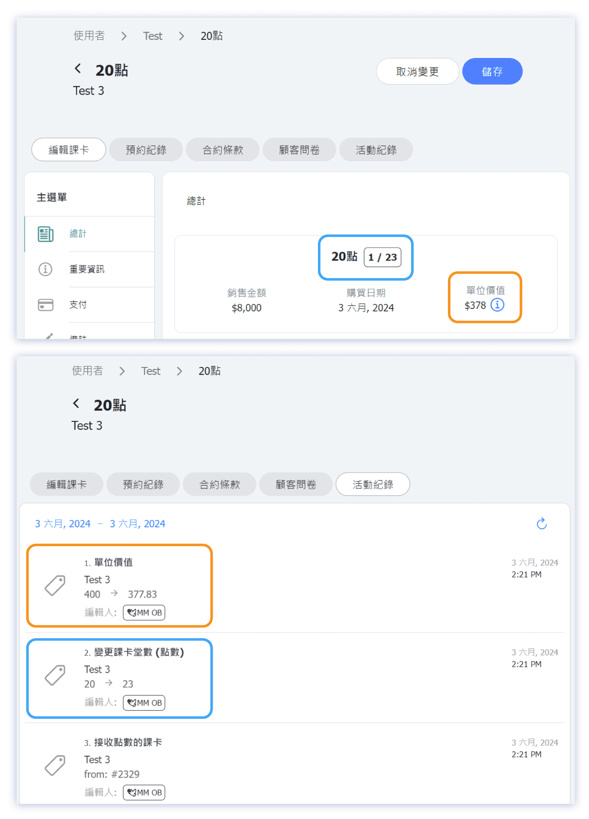 When customer got the new pass, it triggers automatically rolling the "3 Points" pass to the "20 Points" pass, meanwhile both passes' sales prices keep unchanged. The 3 points from the "3 Points" pass are deducted and added to the "20 Points" pass.