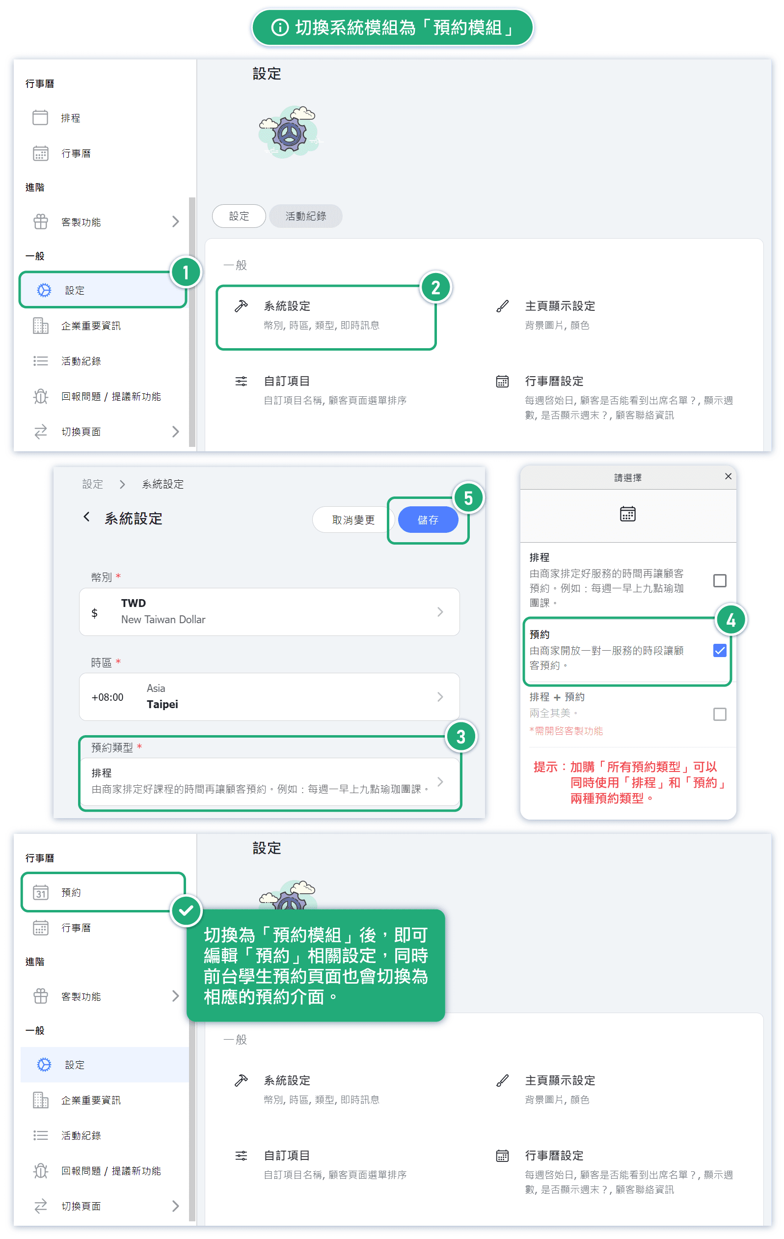 Switch Schedule Modules: In the admin page , go to【Settings】→【Configuration】→【Reservation Type】and choose the module type【Appointment】.