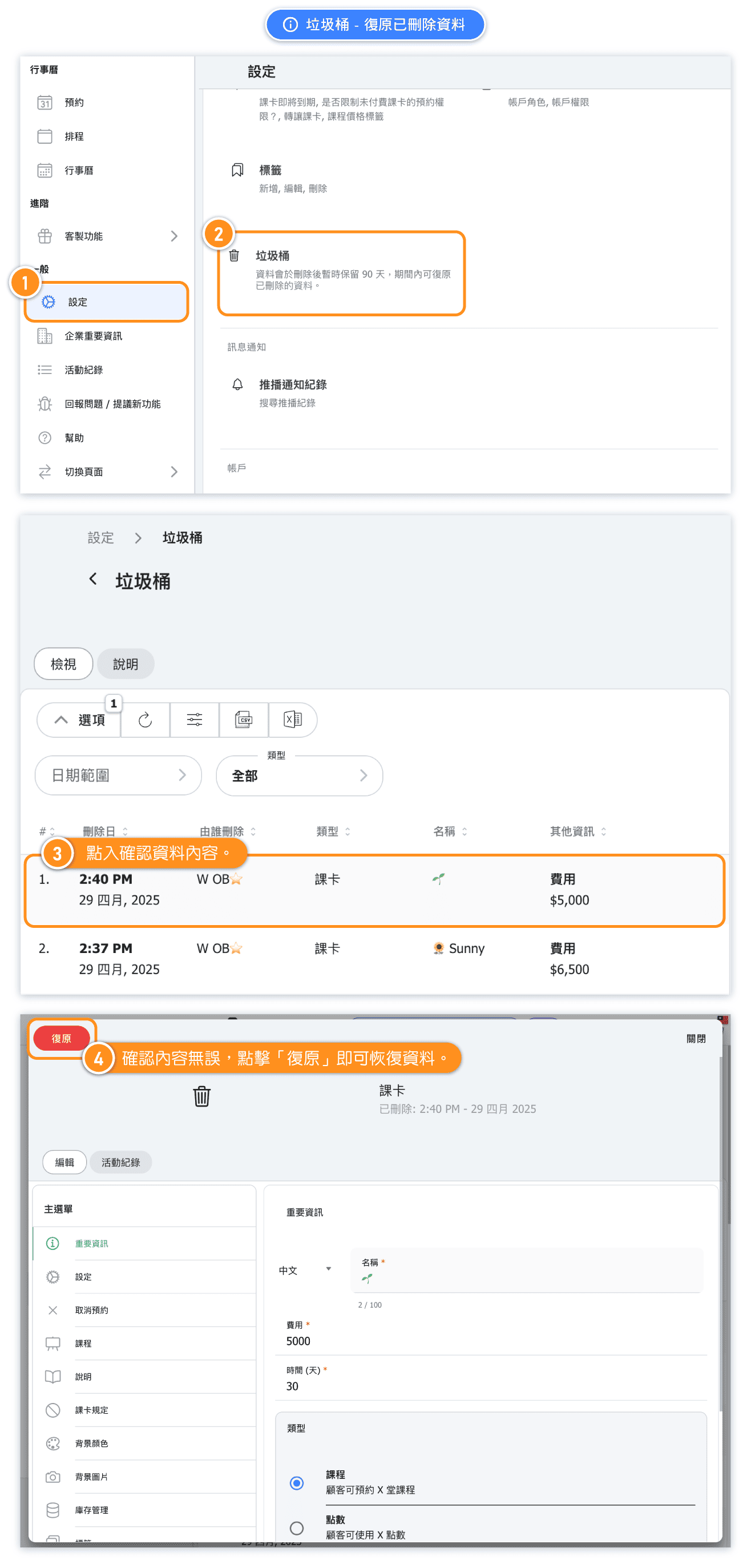 If you would like to grant this permission to other roles, please follow the steps below to adjust the permission settings and authorize the restore function for the designated roles.