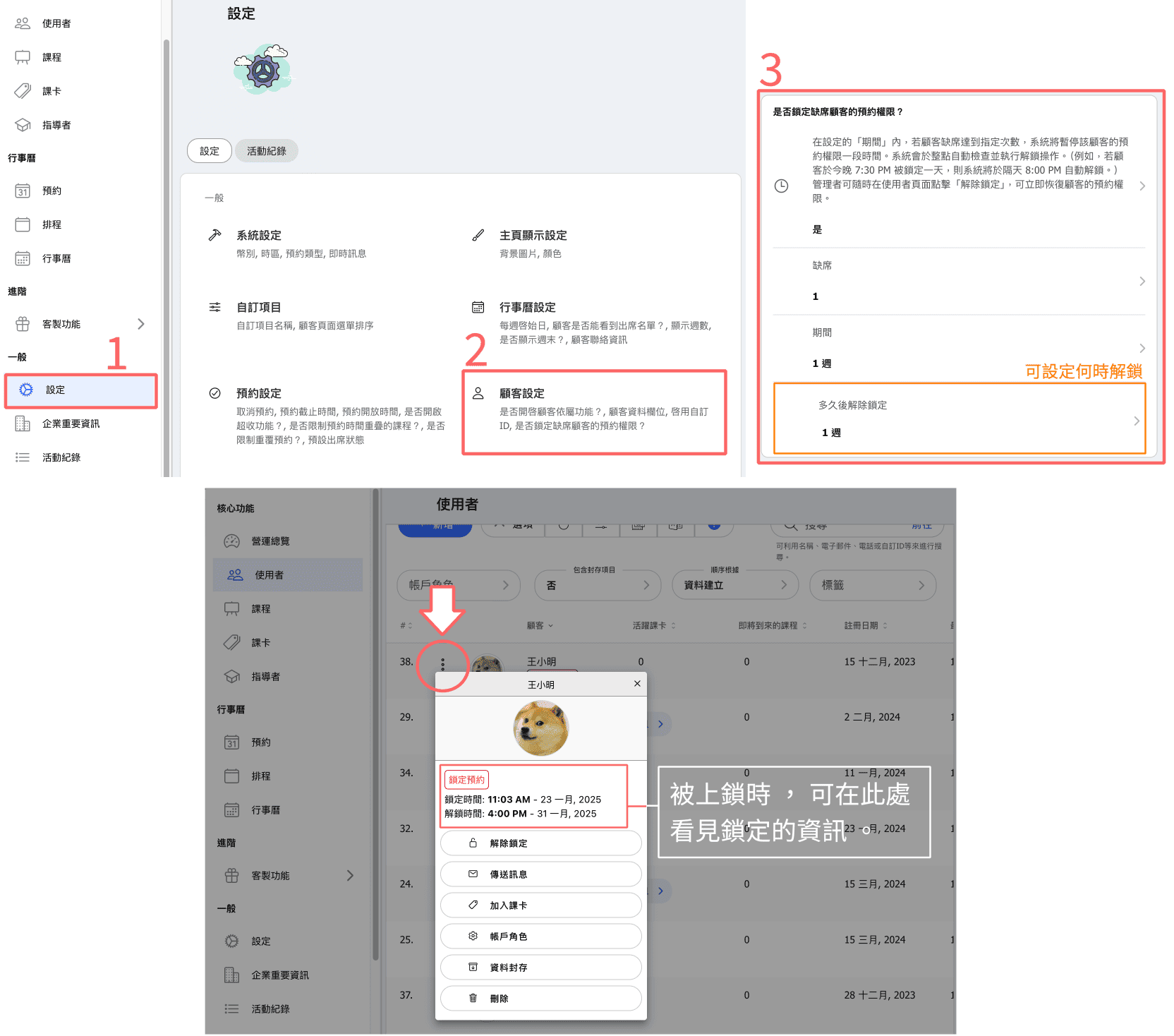 Set a threshold for the number of absences within a specific period before booking privileges are restricted. Existing bookings will not be affected.
