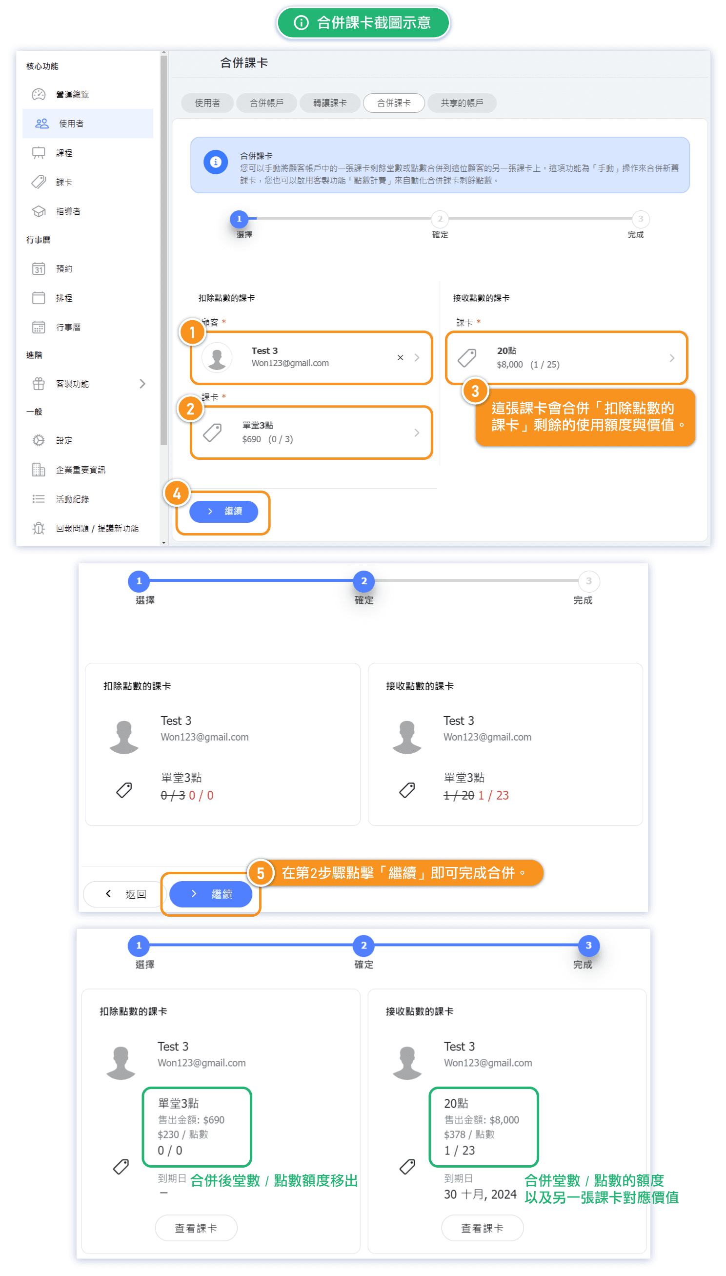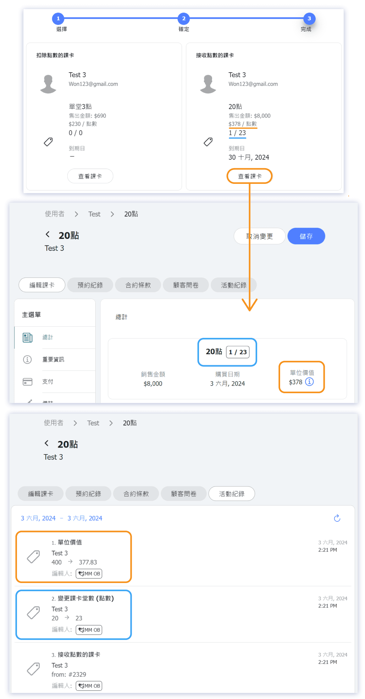 Now, using the rollover pass feature, admin rollover the "3 Points" pass into the "20 Points" pass, meanwhile both passes' sales prices keep unchanged. The 3 points from the "3 Points" pass are deducted and added to the "20 Points" pass.