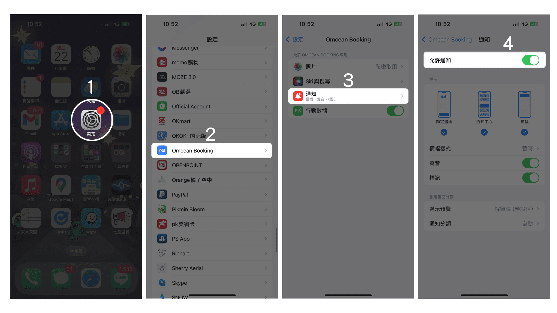 通常是設備的設定引起的,可以前往手機或平板的「設定」確認APP的通知相關設定是否開啟,示範如下: