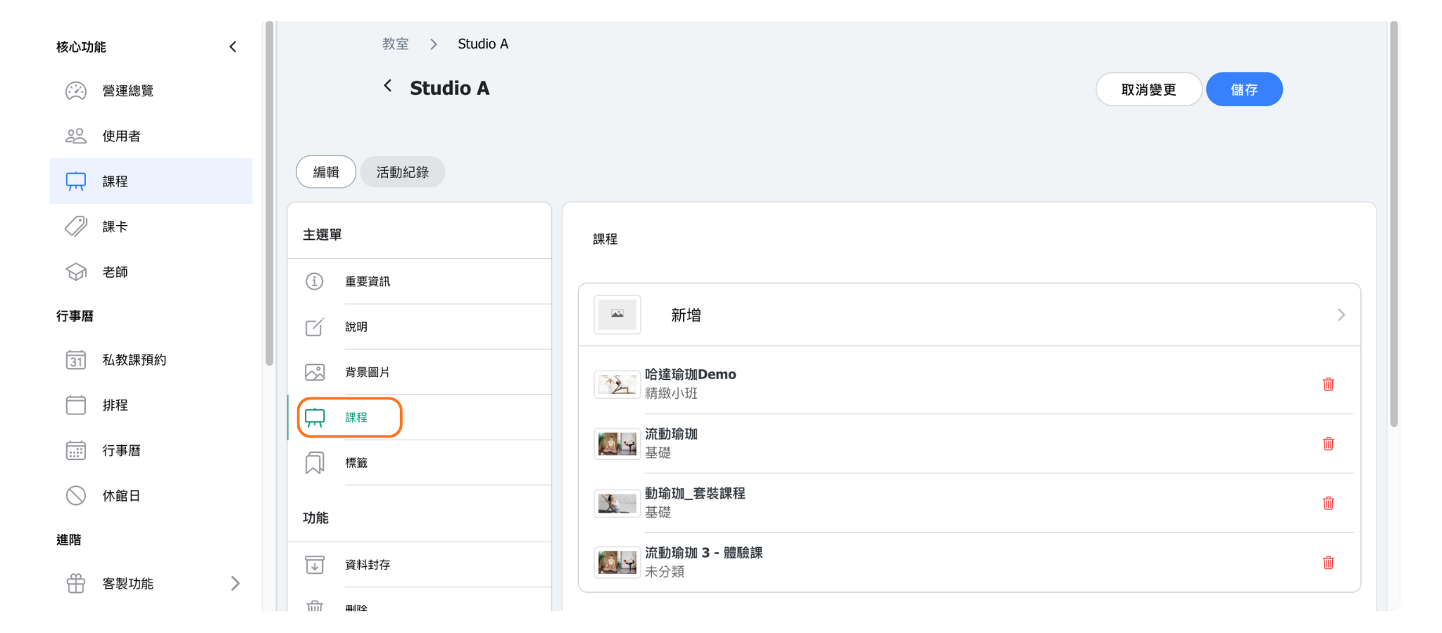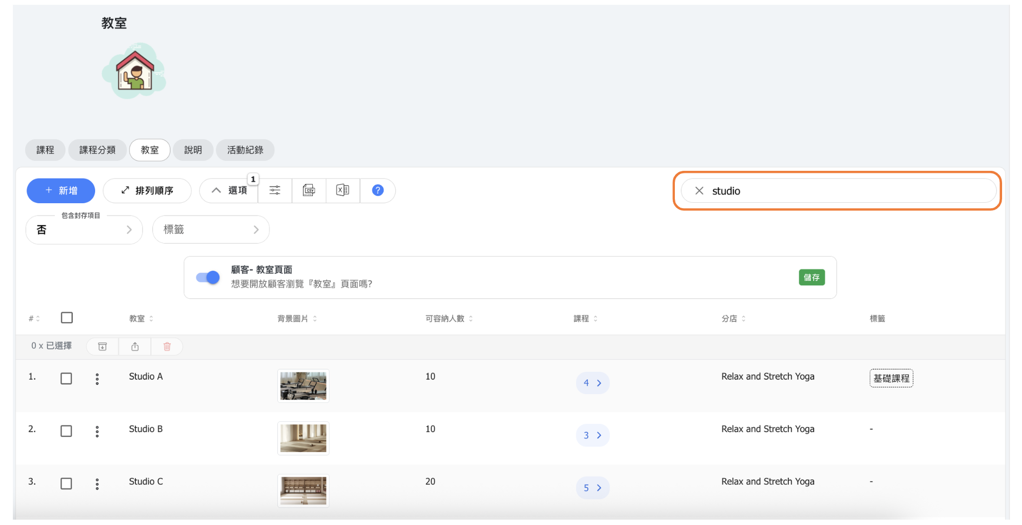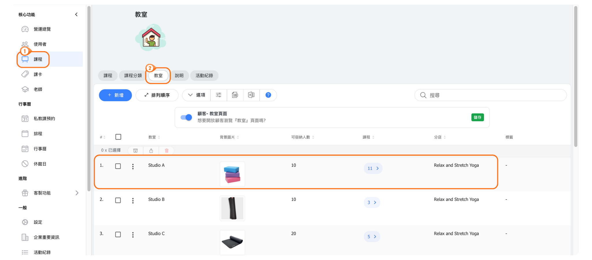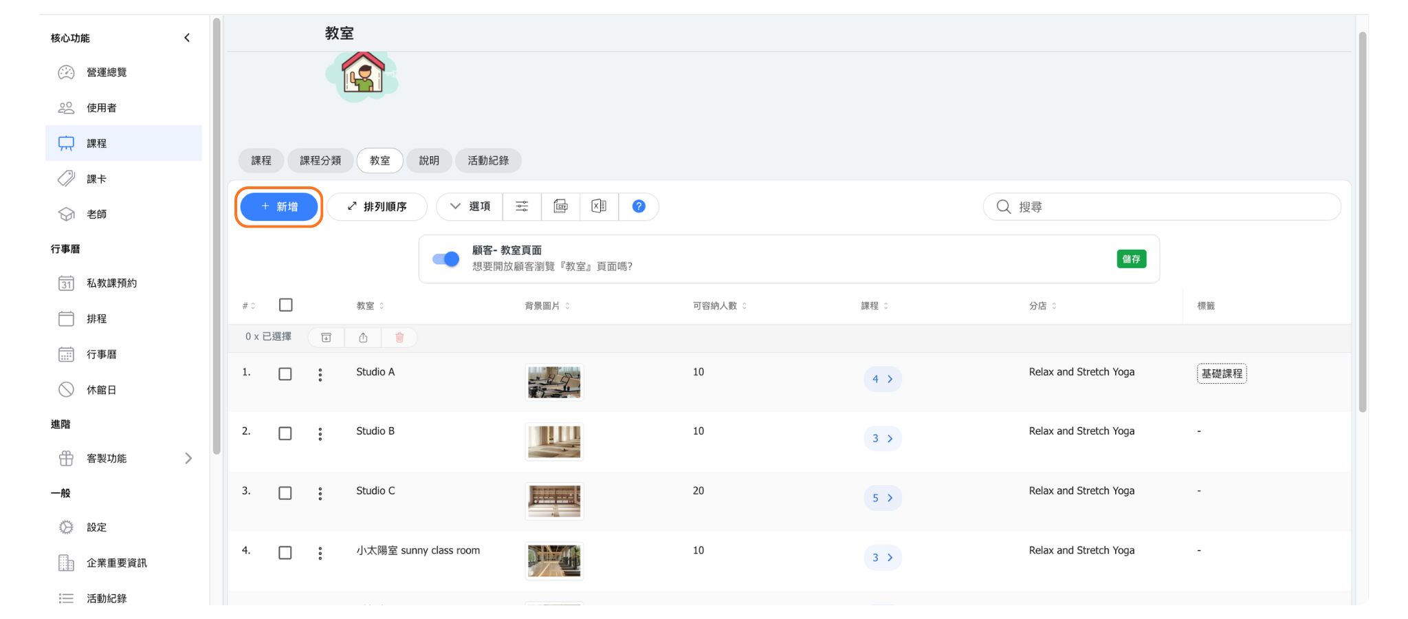 🟡 注意:教室是選用的。如果您的企業在單一空間運營,您可能不需要設定教室。教室對於擁有多個工作室、房間或地點的企業最有用。