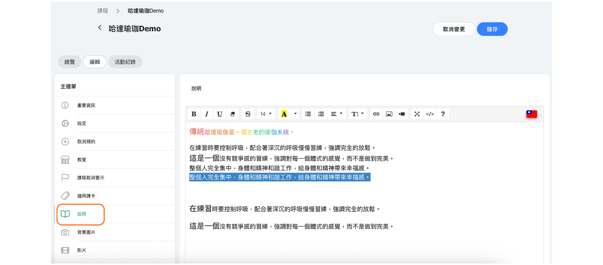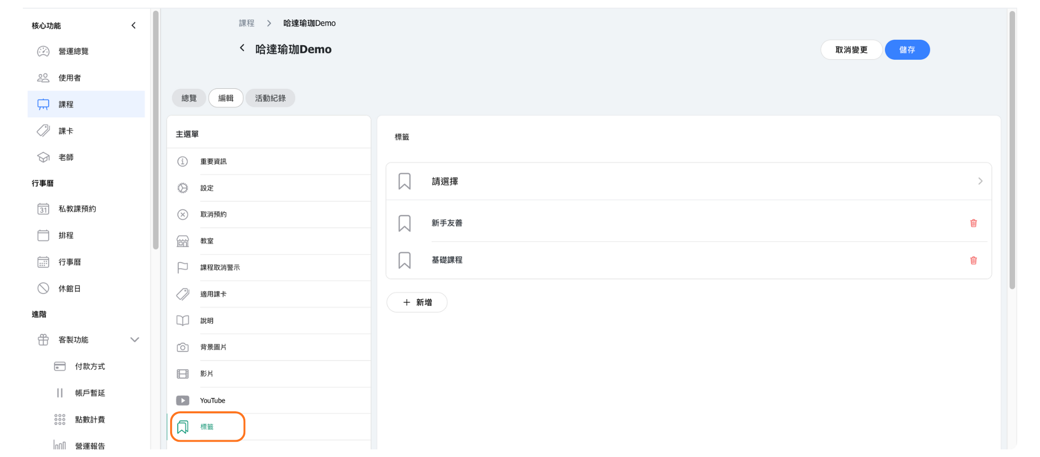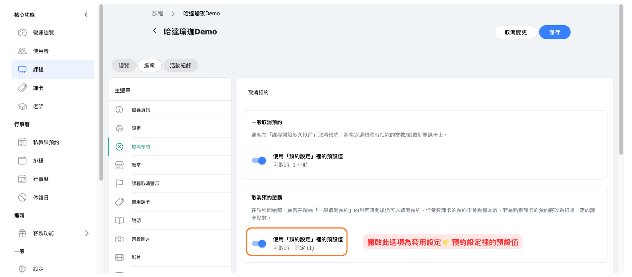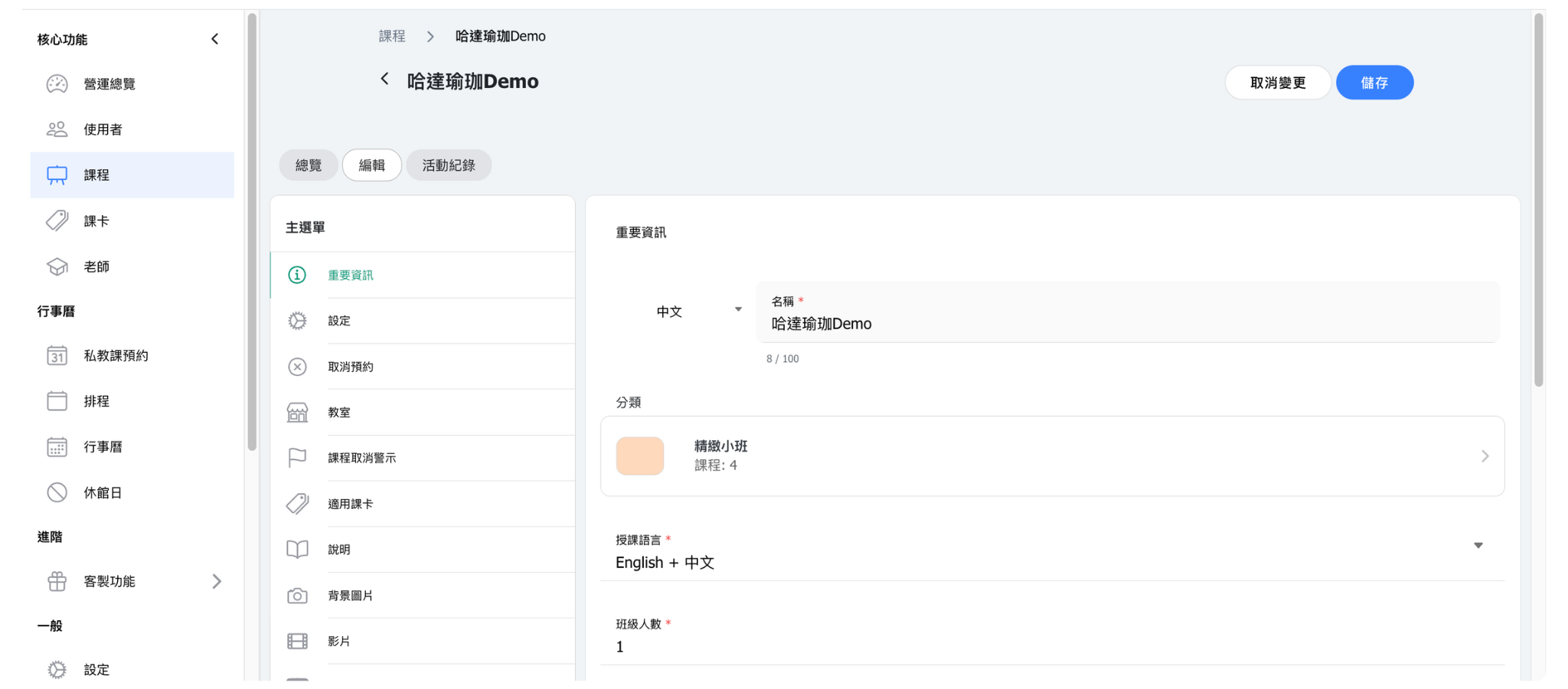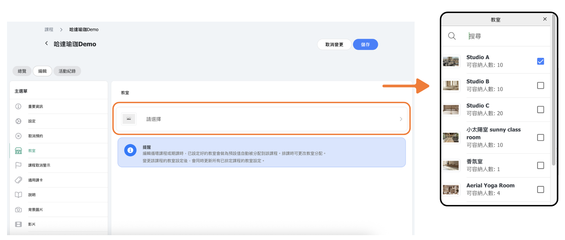 🔹 在「課程」頁面更新教室也會更新所有未來尚未開始、尚未有人預約的課程。