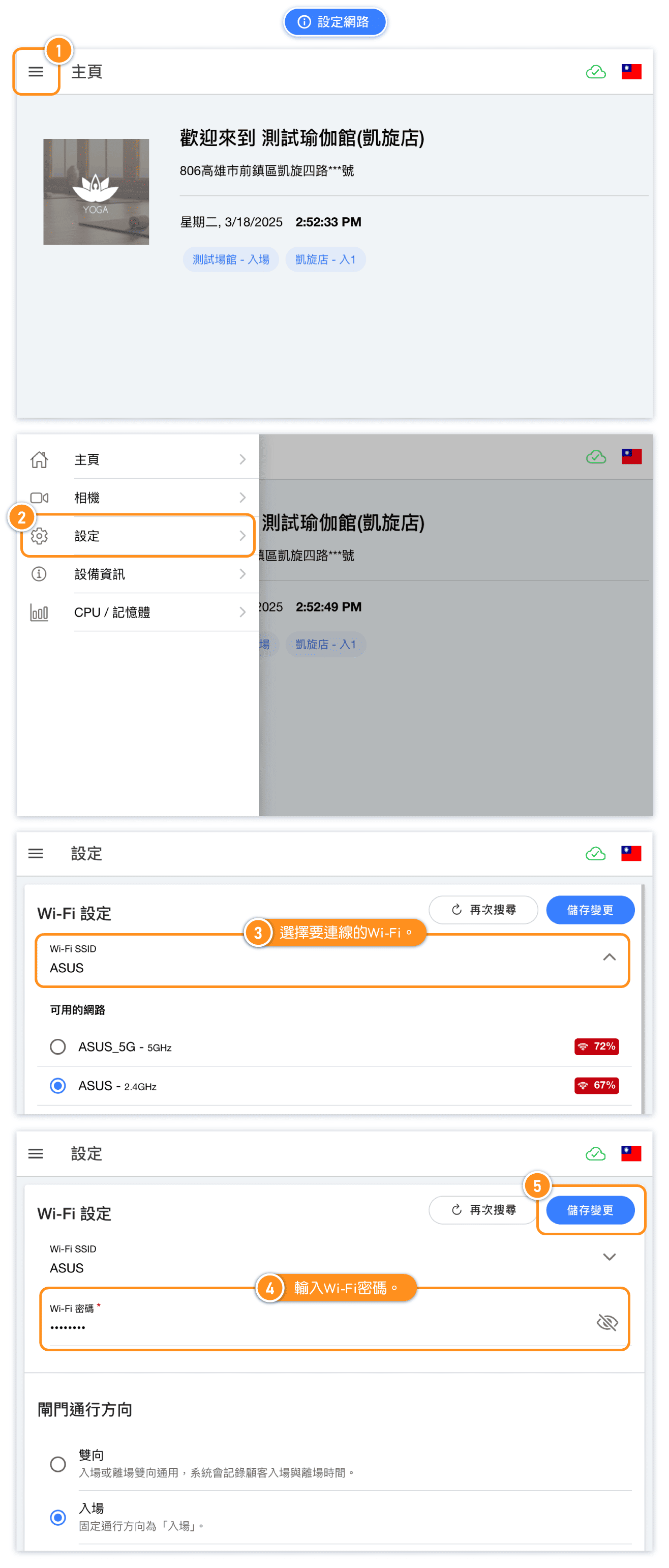 - 確保您的網路連線穩定。確認方法:站在閘門1公尺範圍內時,手機或電腦能連接上同一個Wi-Fi,並且訊號是滿格的。
