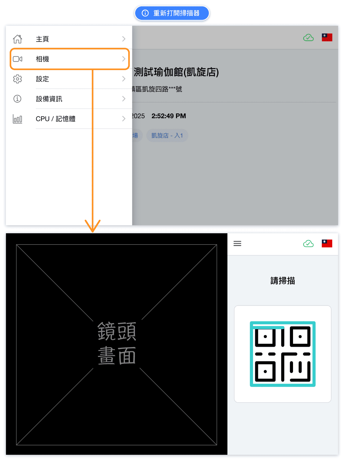 常見問答: 如何回到掃描QR Code的頁面?(相機頁面)