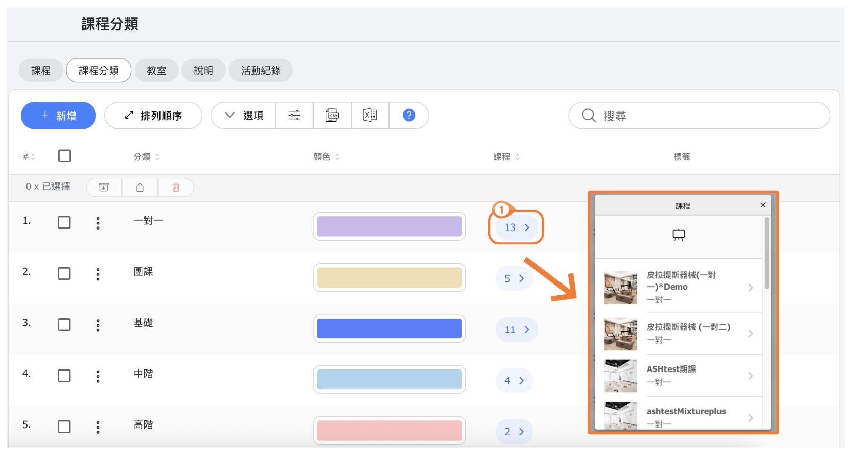 🔹 點擊分類列表中的課程數量可快速查看該分類中的課程