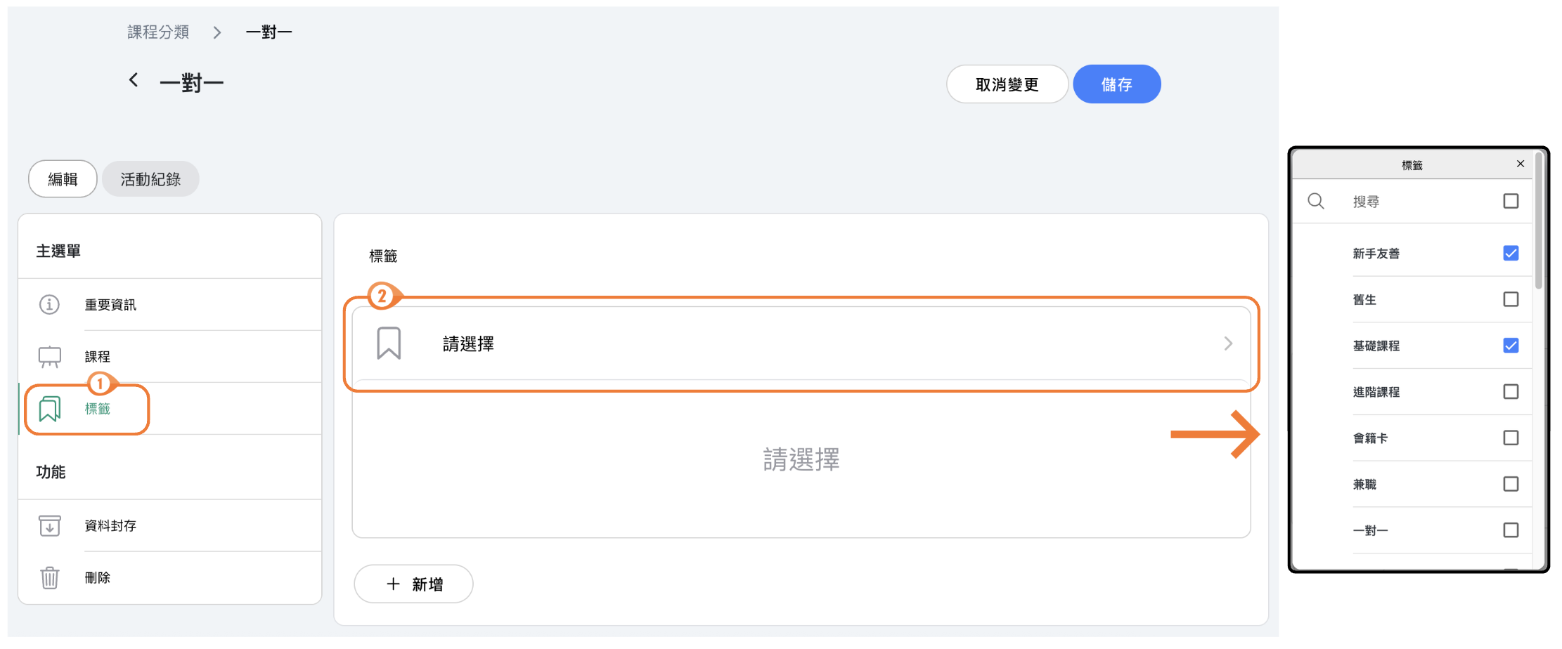 🔹 從現有標籤中選擇或建立新標籤