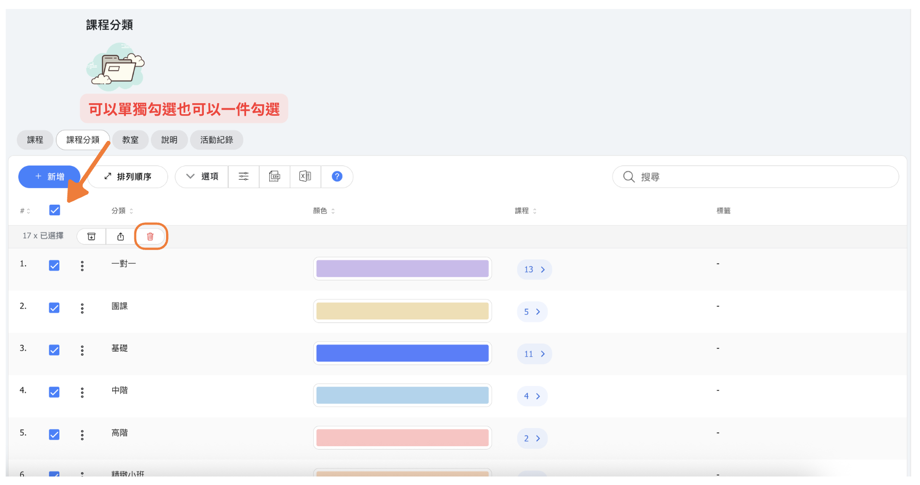 📝 如何查看目前在此分類中的所有課程列表