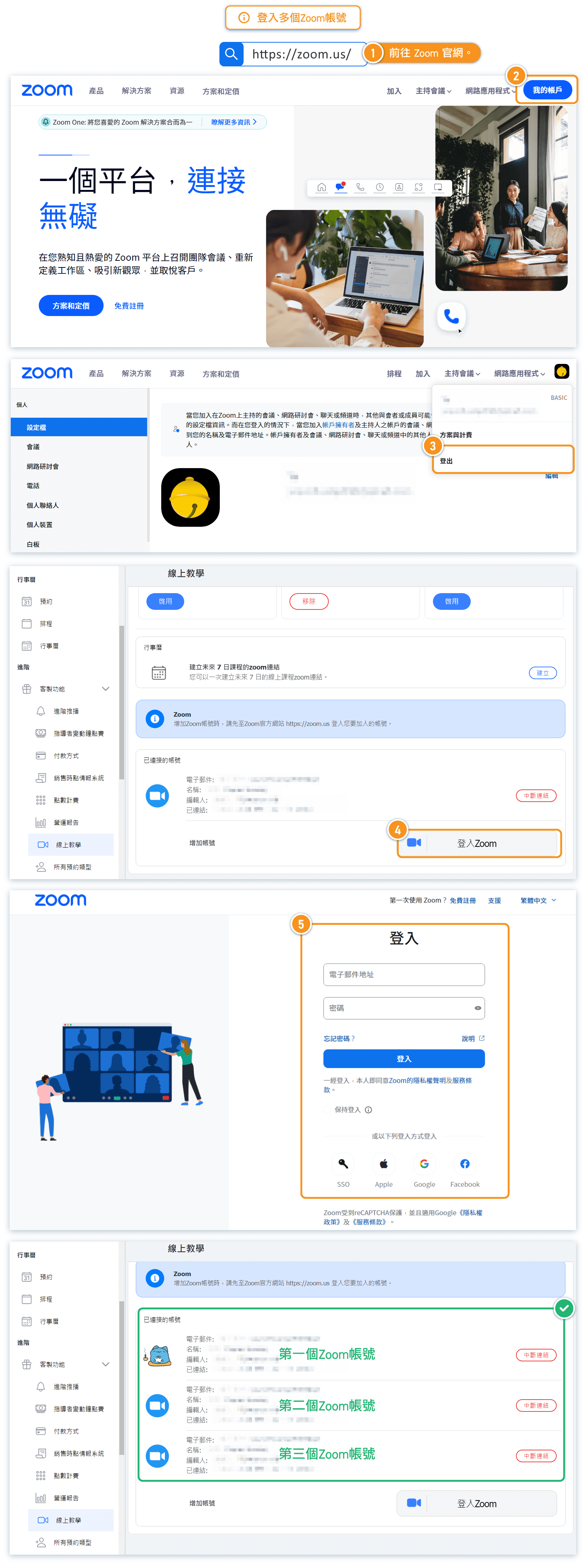- 登入新帳號:登入您想要新增的 Zoom 帳號