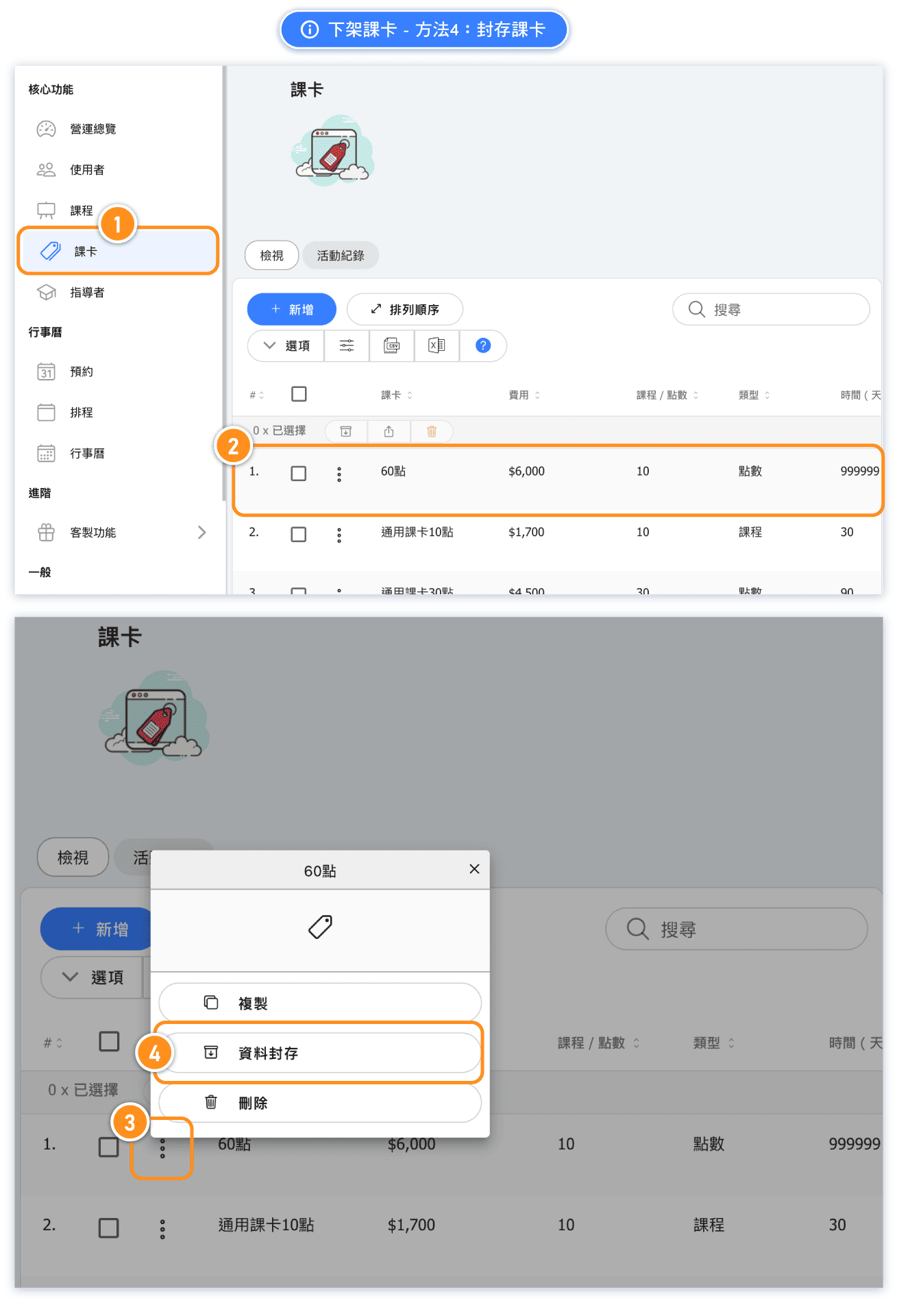 當您不再公開販售這張課卡,但仍希望讓顧客看見時,可以使用這個方法。