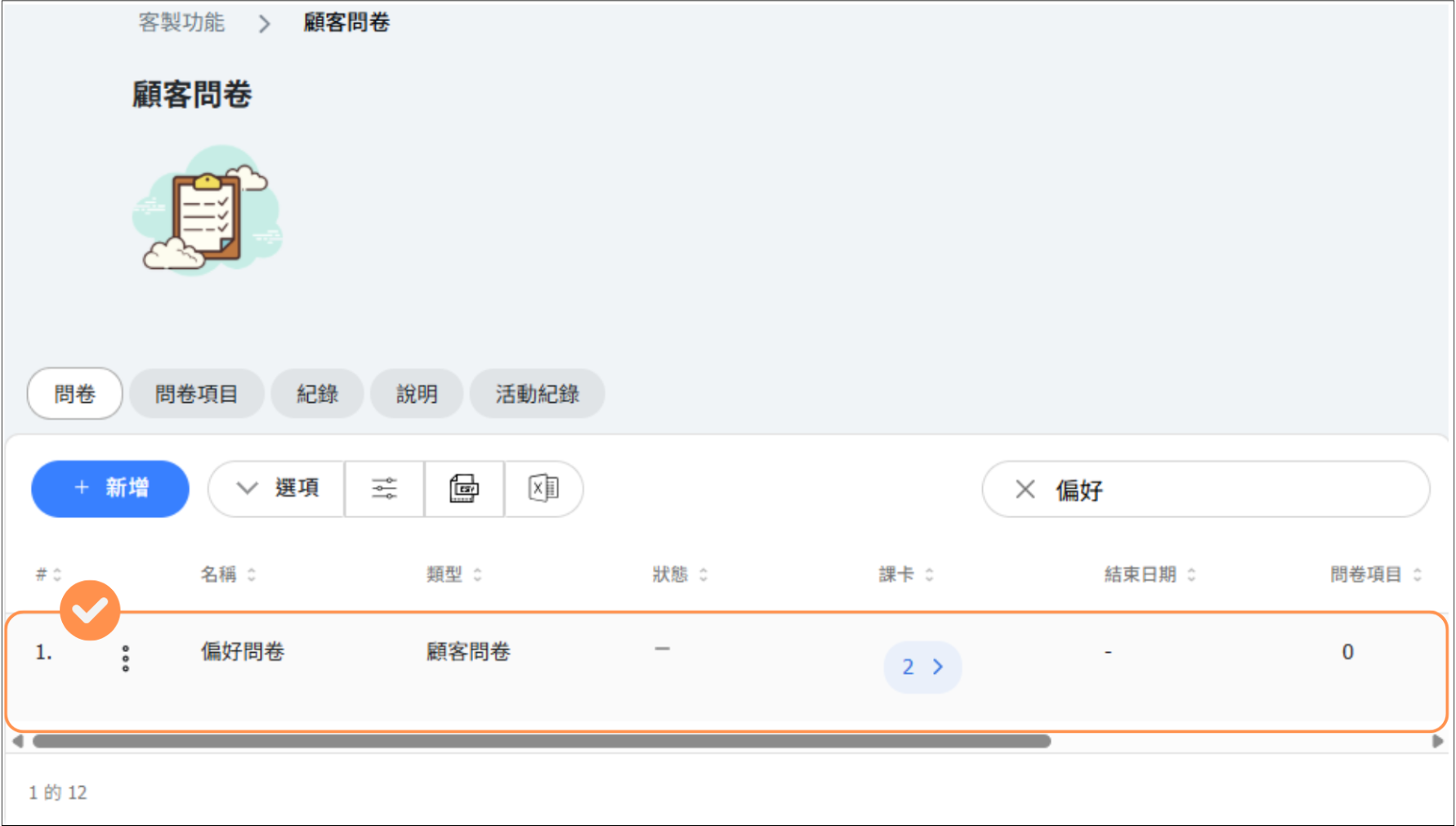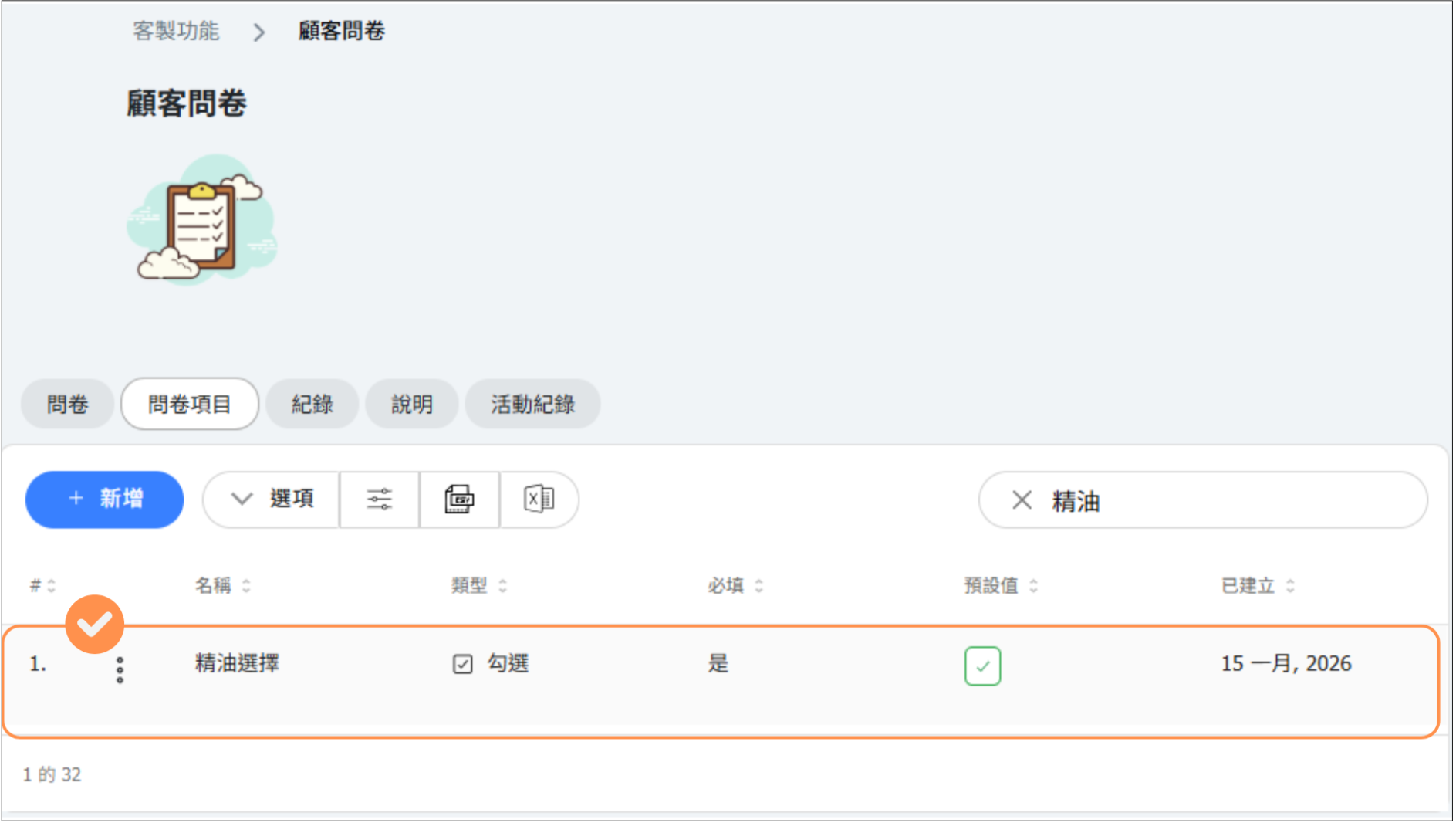🔹 點擊 儲存 後,可以在「問卷項目」列表中查看已建立的問卷項目。