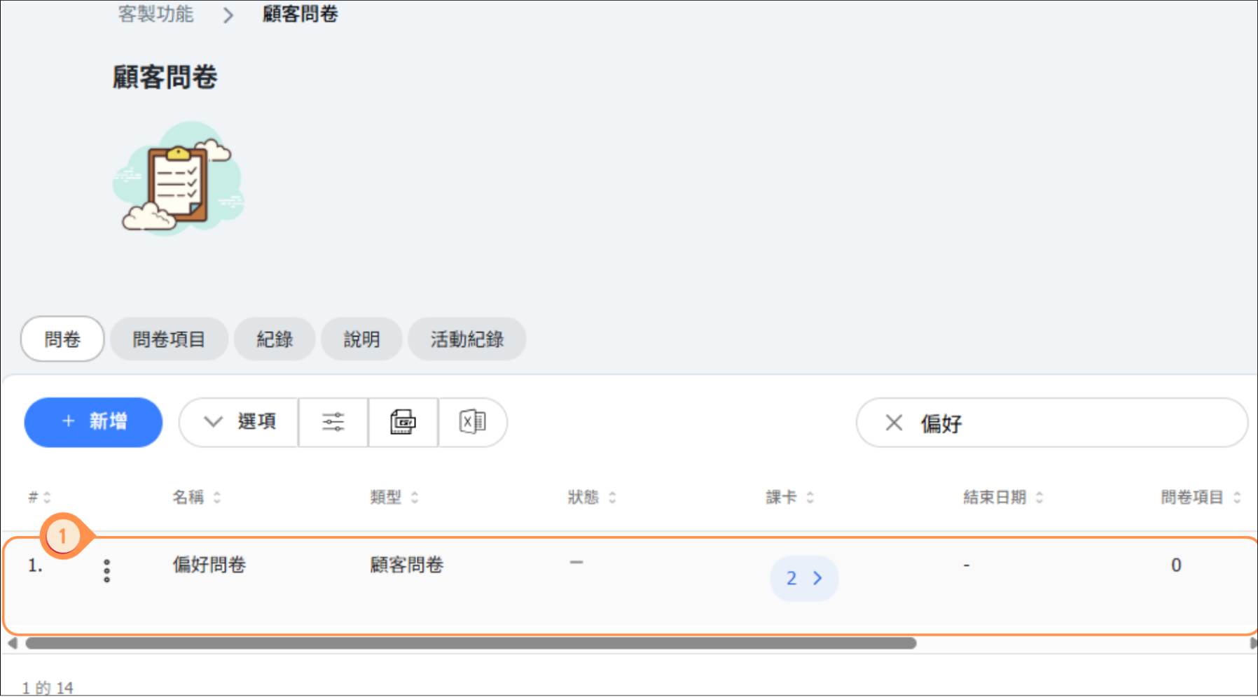 - 前往客製功能 > 顧客問卷