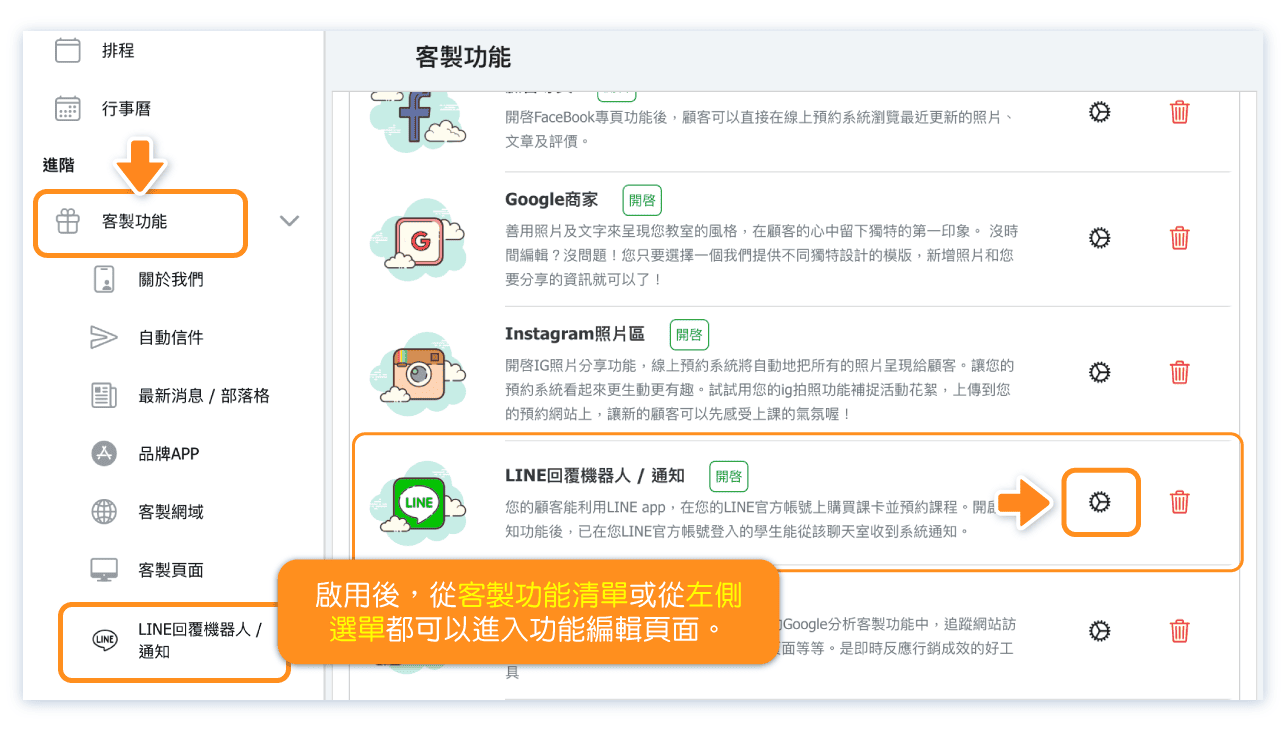 哪裡打開客製功能「LINE回覆機器人/通知」