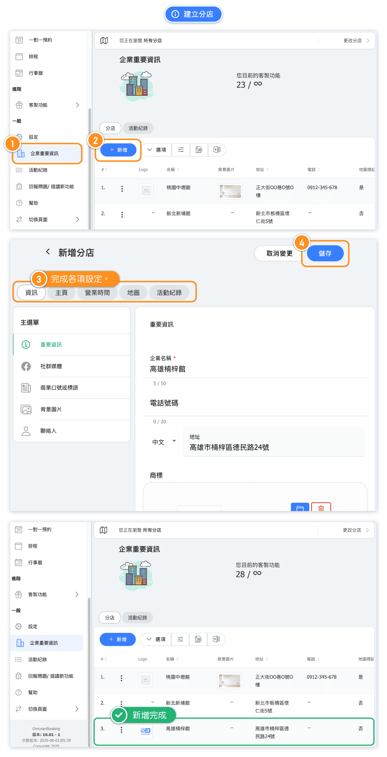 即將有第二間教室了嗎?比起重新建立一間教室預約網站,選擇使用「分店」功能的好處是:
