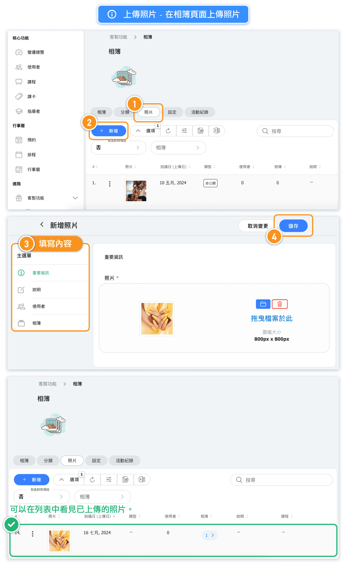 - 公開相簿可以透過展示您的課程來吸引新顧客
