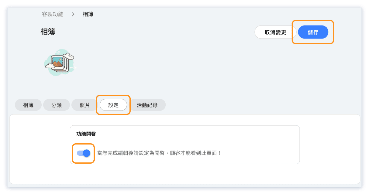 相簿功能讓您建立並與顧客分享照片集。此功能專為想要以下目標的商家設計: