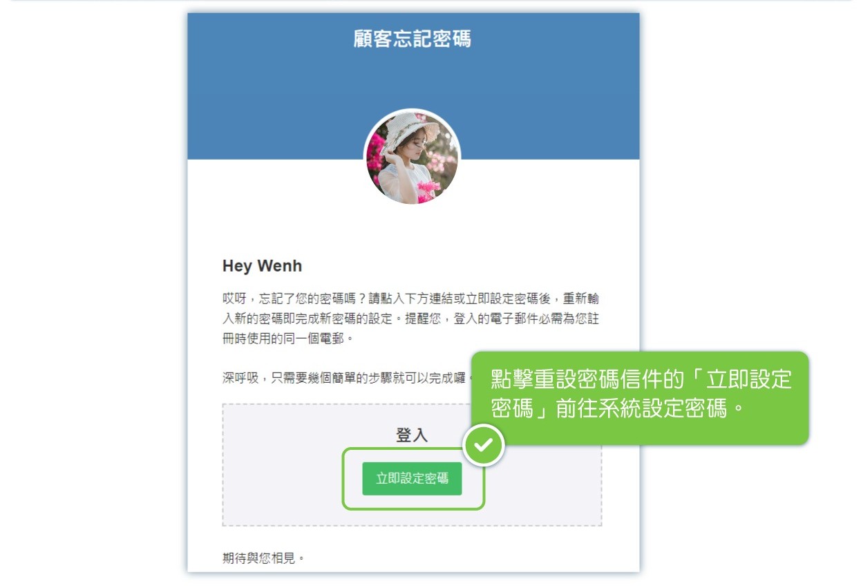 重設密碼的方法 - 1. 管理者協助從後台傳送給帳戶持有人