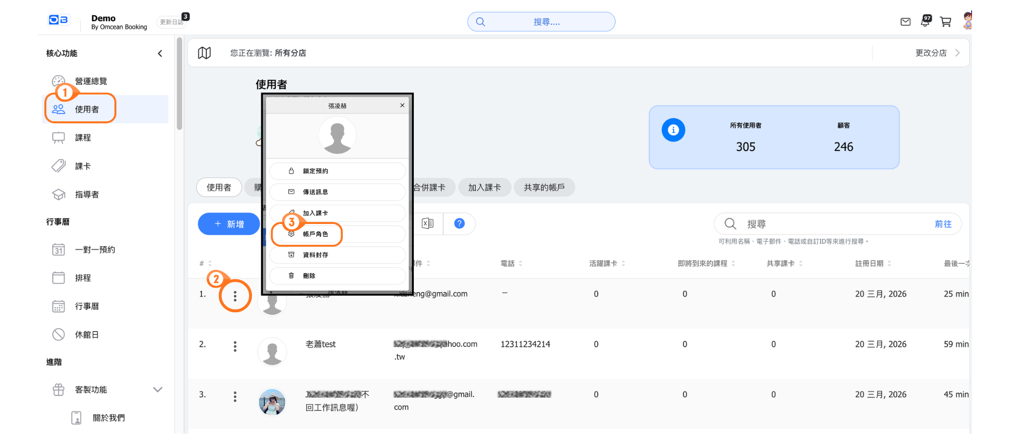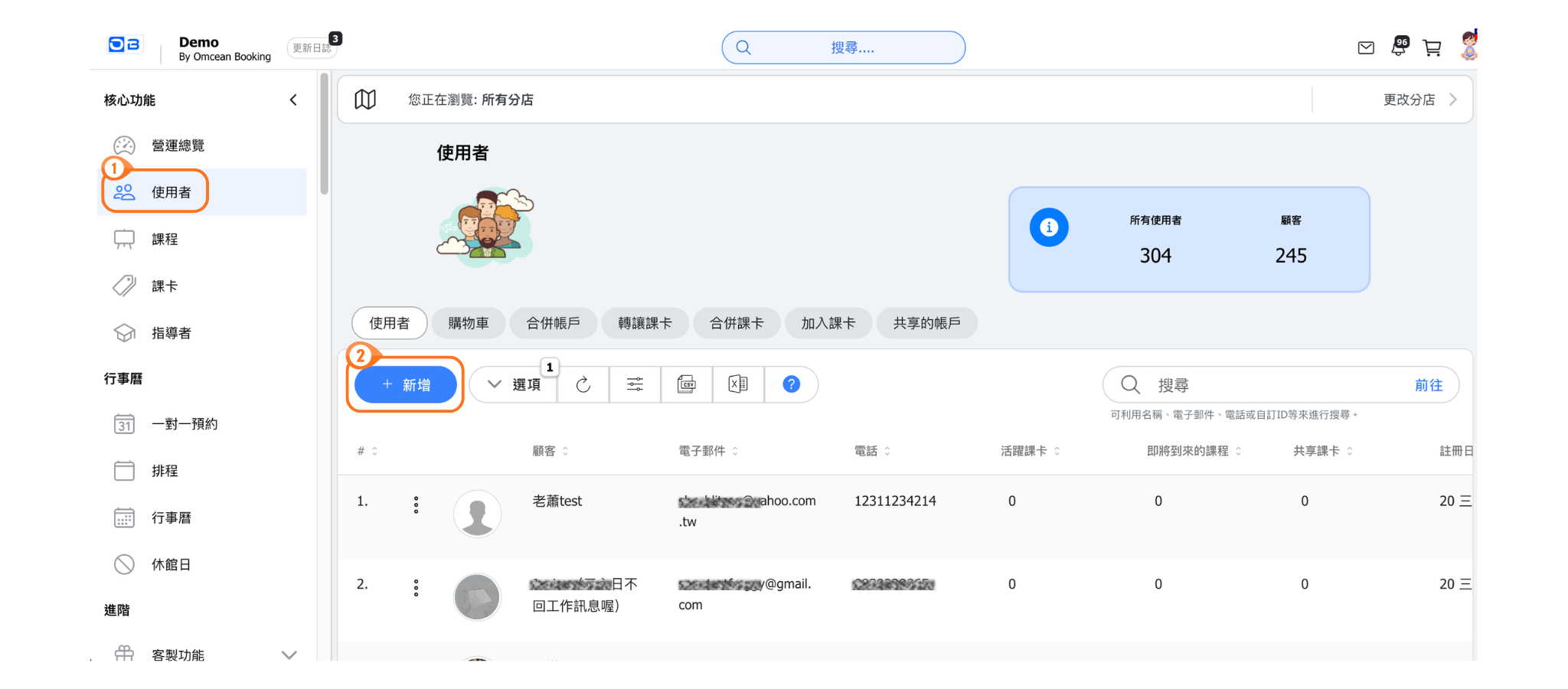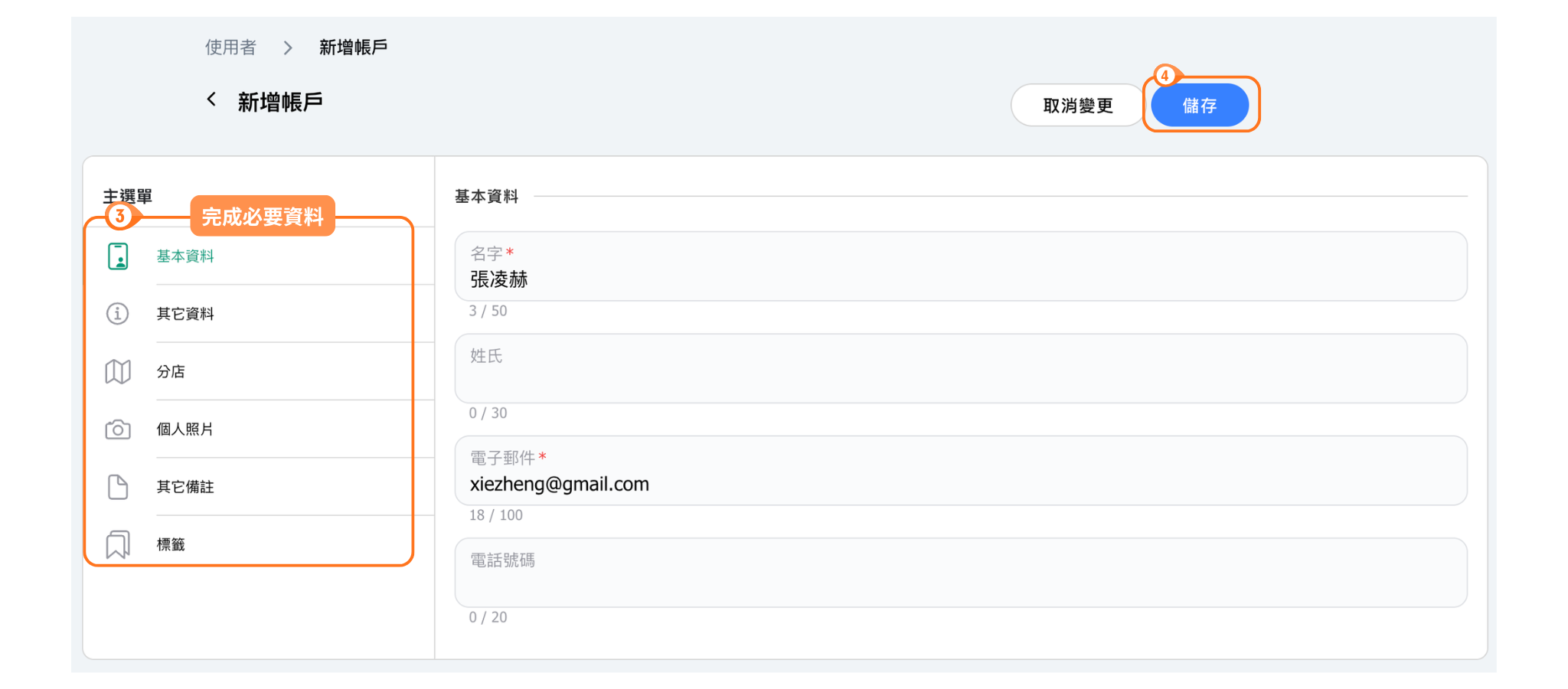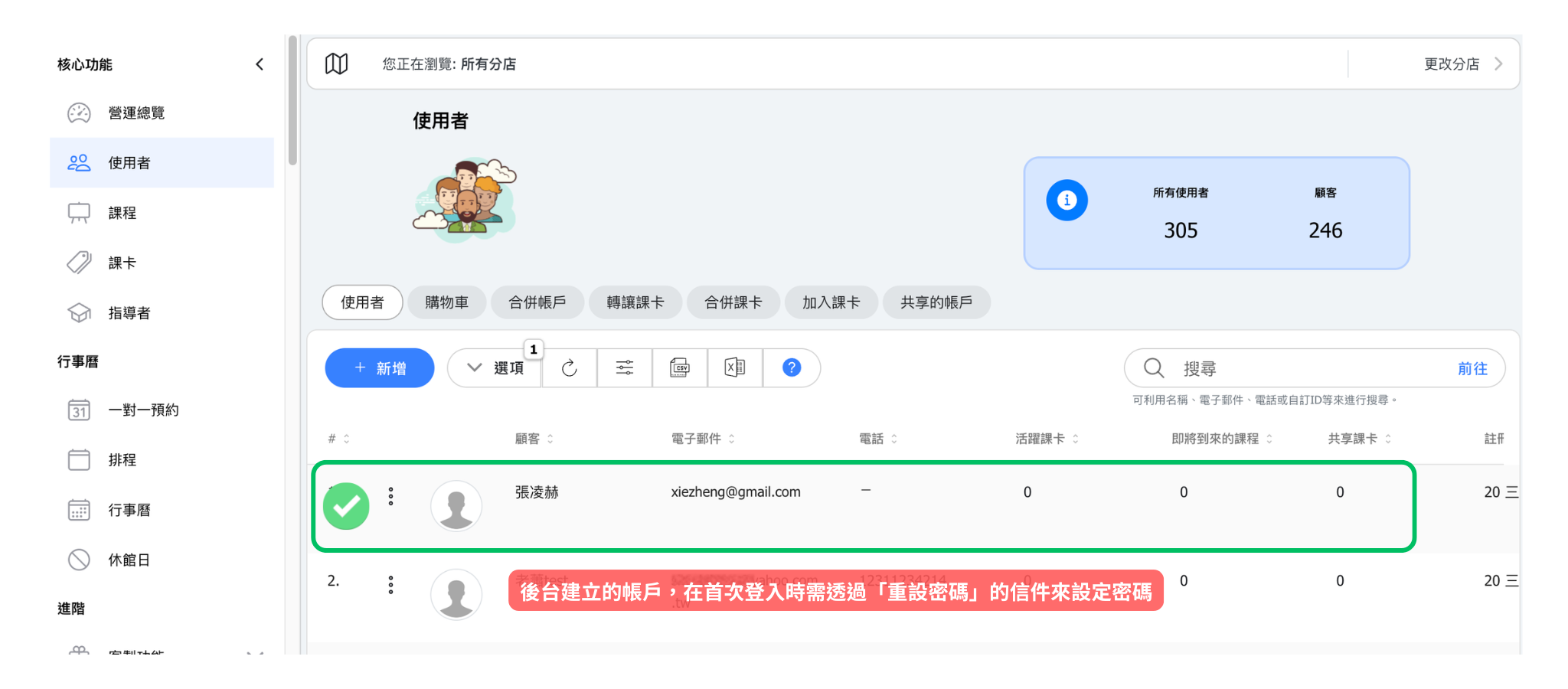 - 點選左側功能列的「使用者」