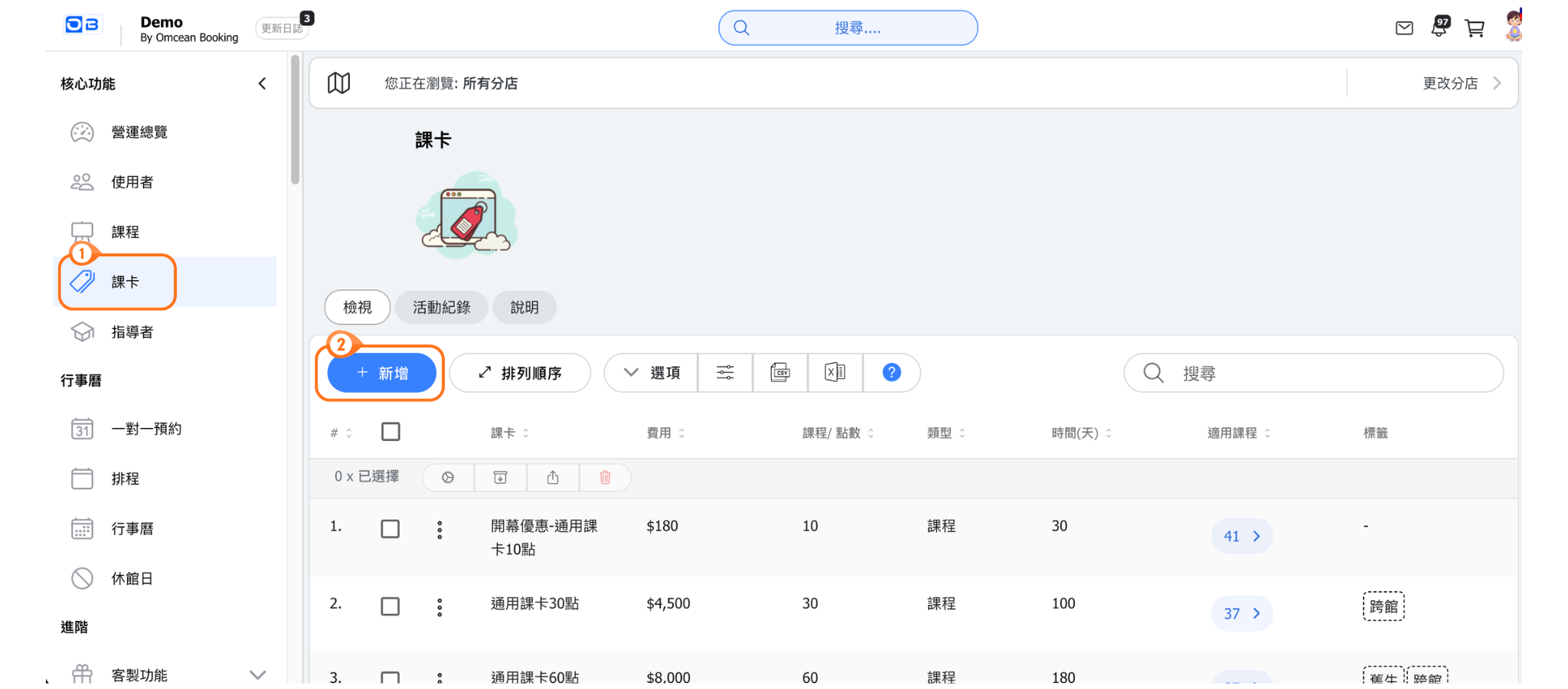 - ⛔下架課程或課卡請使用「封存」或「終止課程」功能。