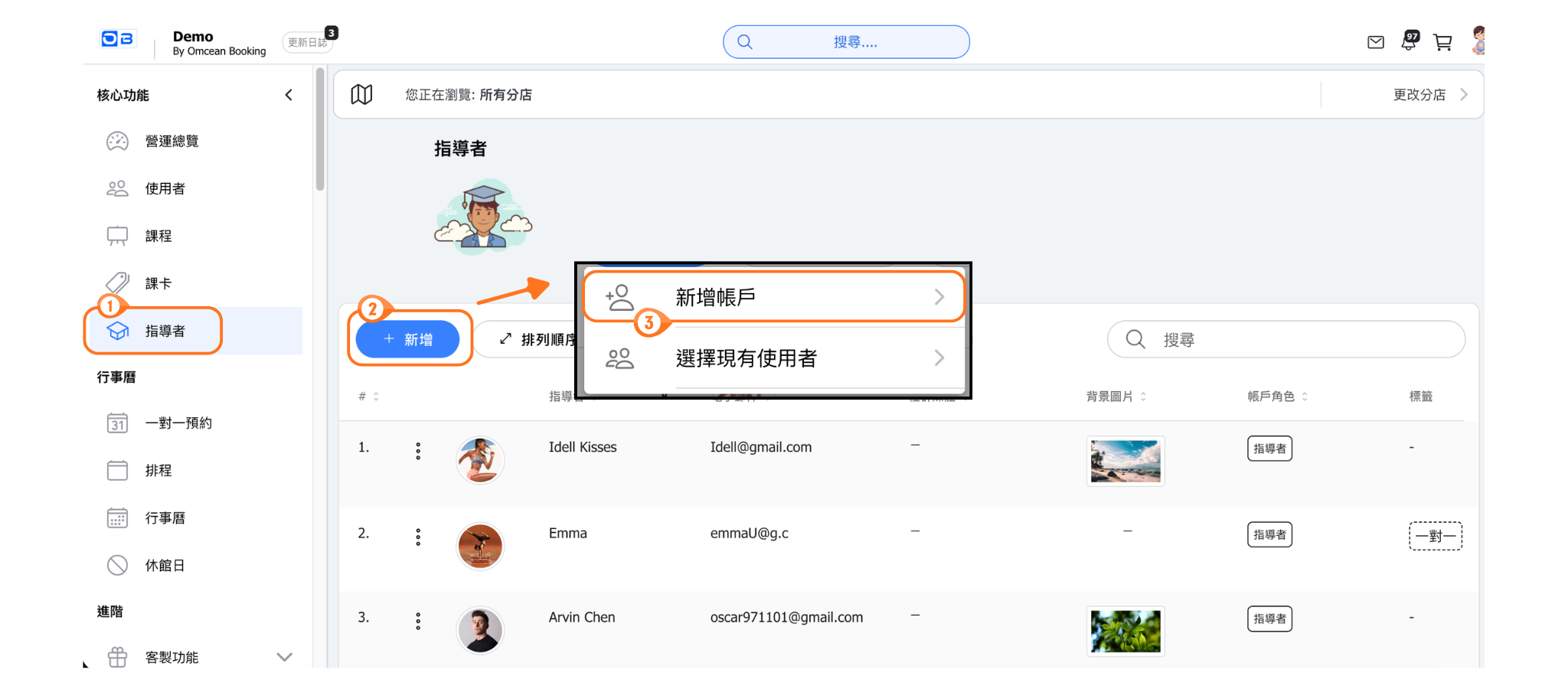 建立指導者 - 1. 管理員建立指導者帳號