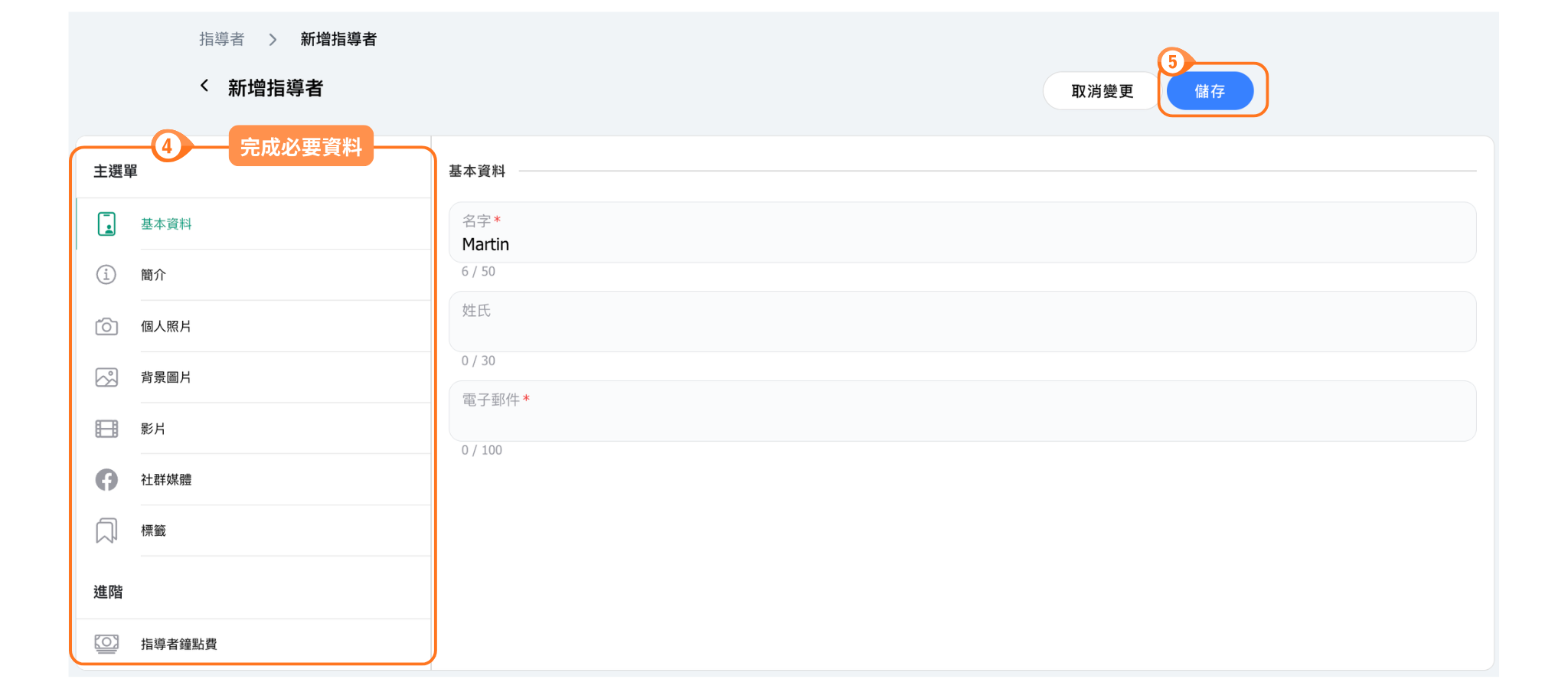- 點選左側功能列的「指導者」