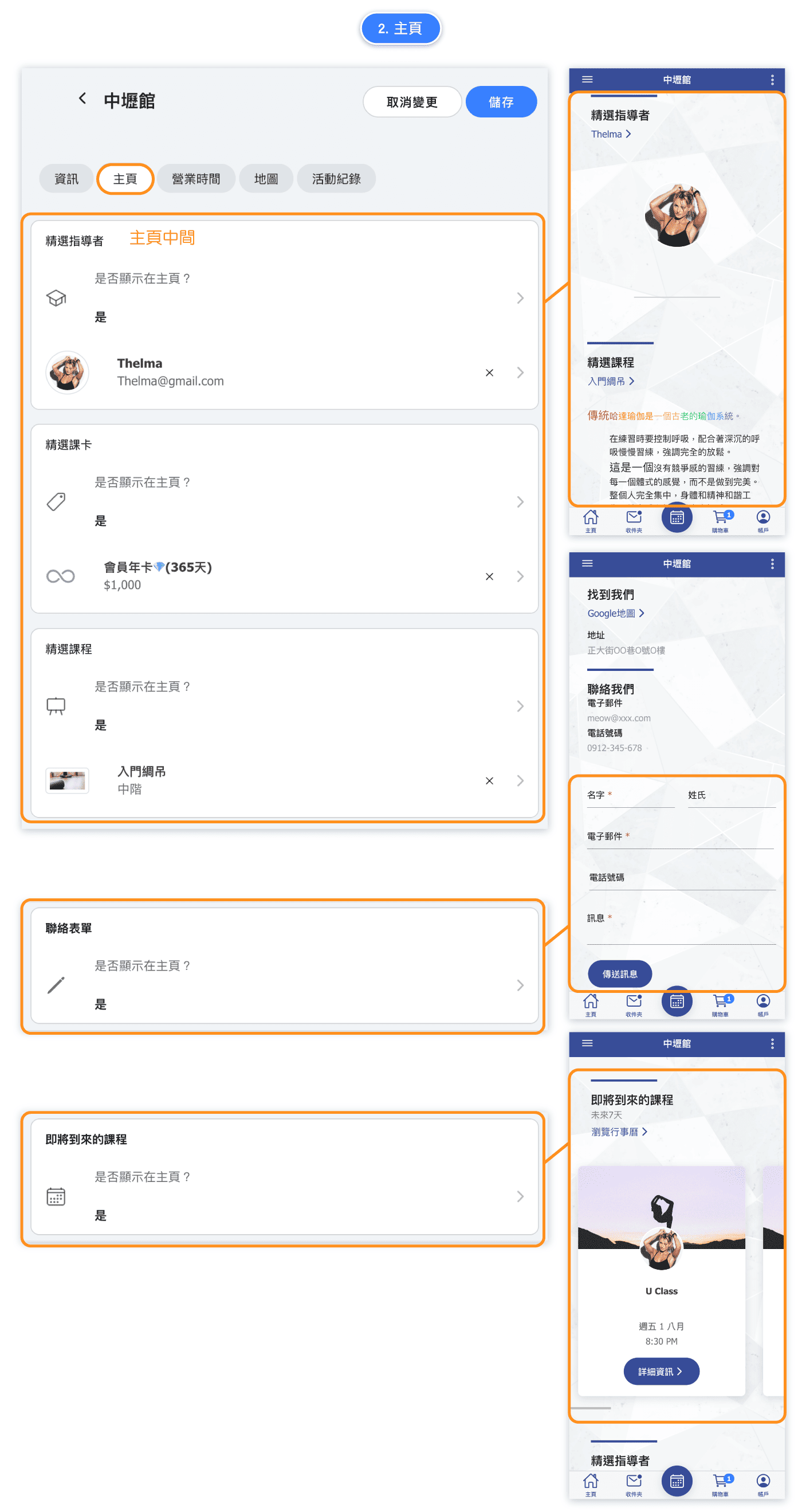 主頁標籤控制哪些精選內容會顯示在客戶預約頁面上。這有助於突顯您最優秀的教練、熱門會籍和課程。