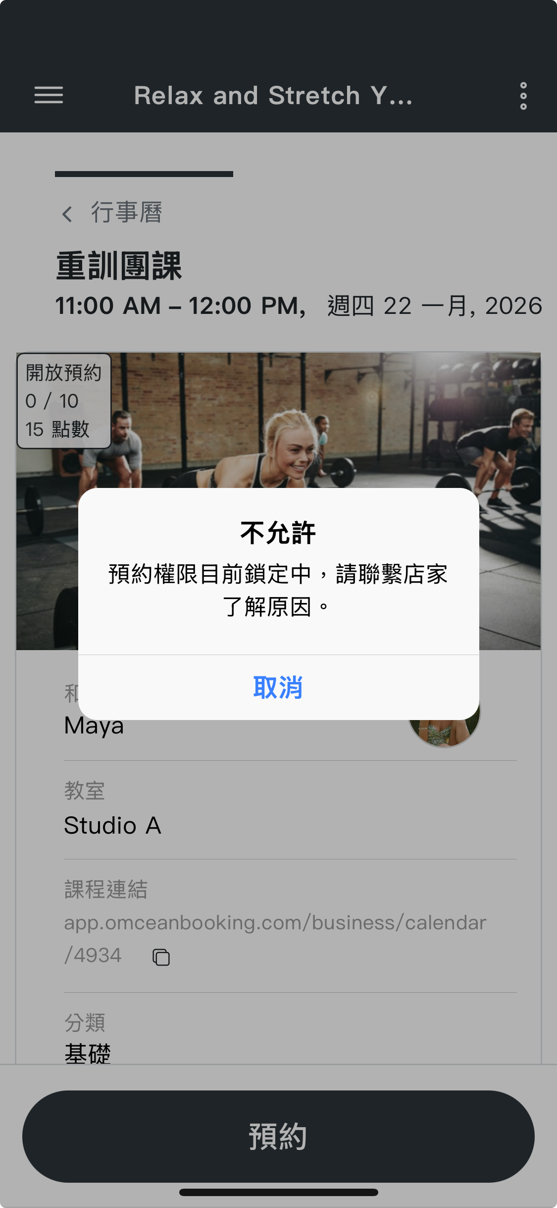 (已預約的課程不受影響,解除鎖定後會重新開始計算缺席次數。)