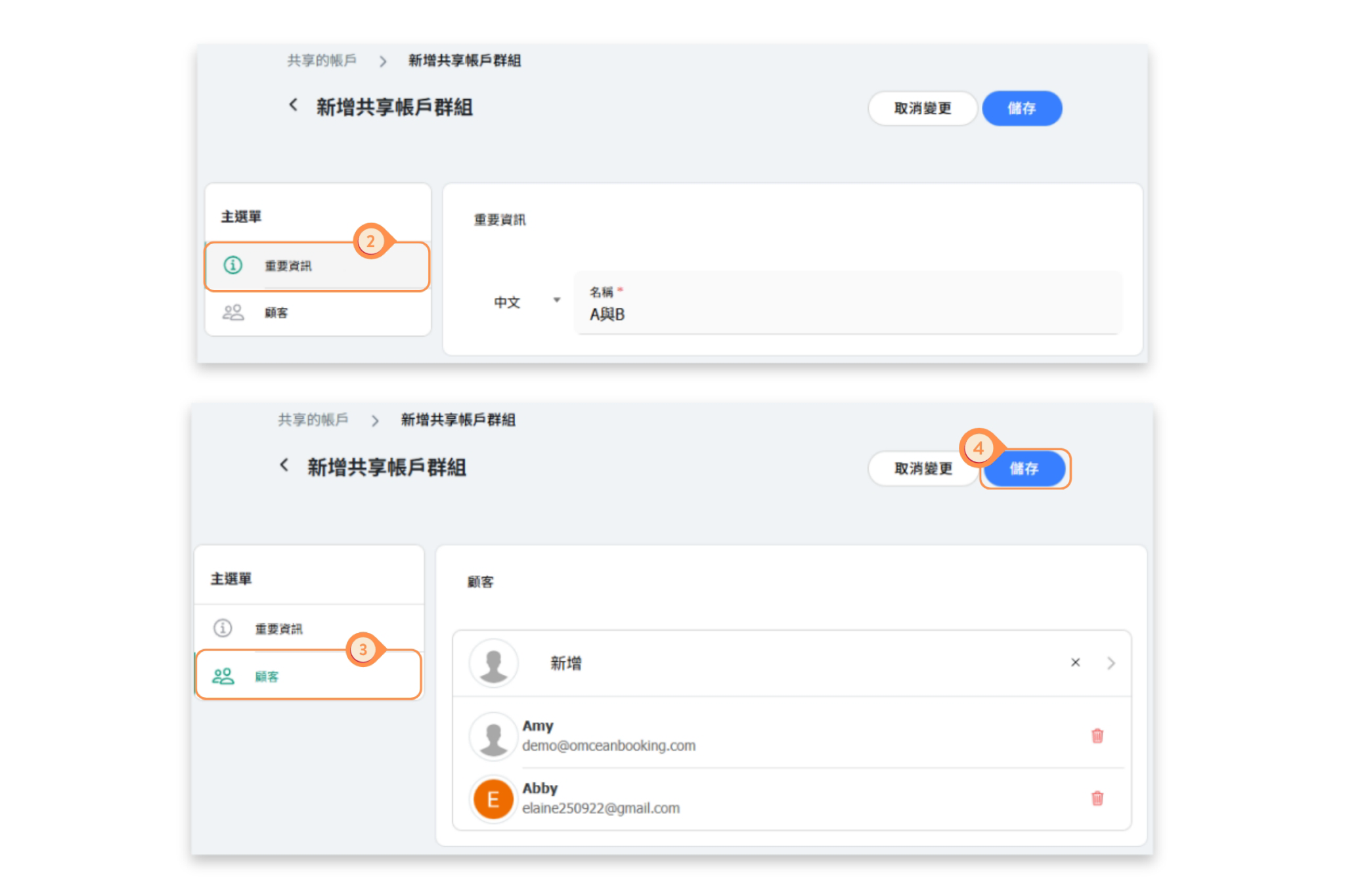 完成設定後點擊「儲存」,即可在「共享的帳戶」頁面中看到新建立的群組。