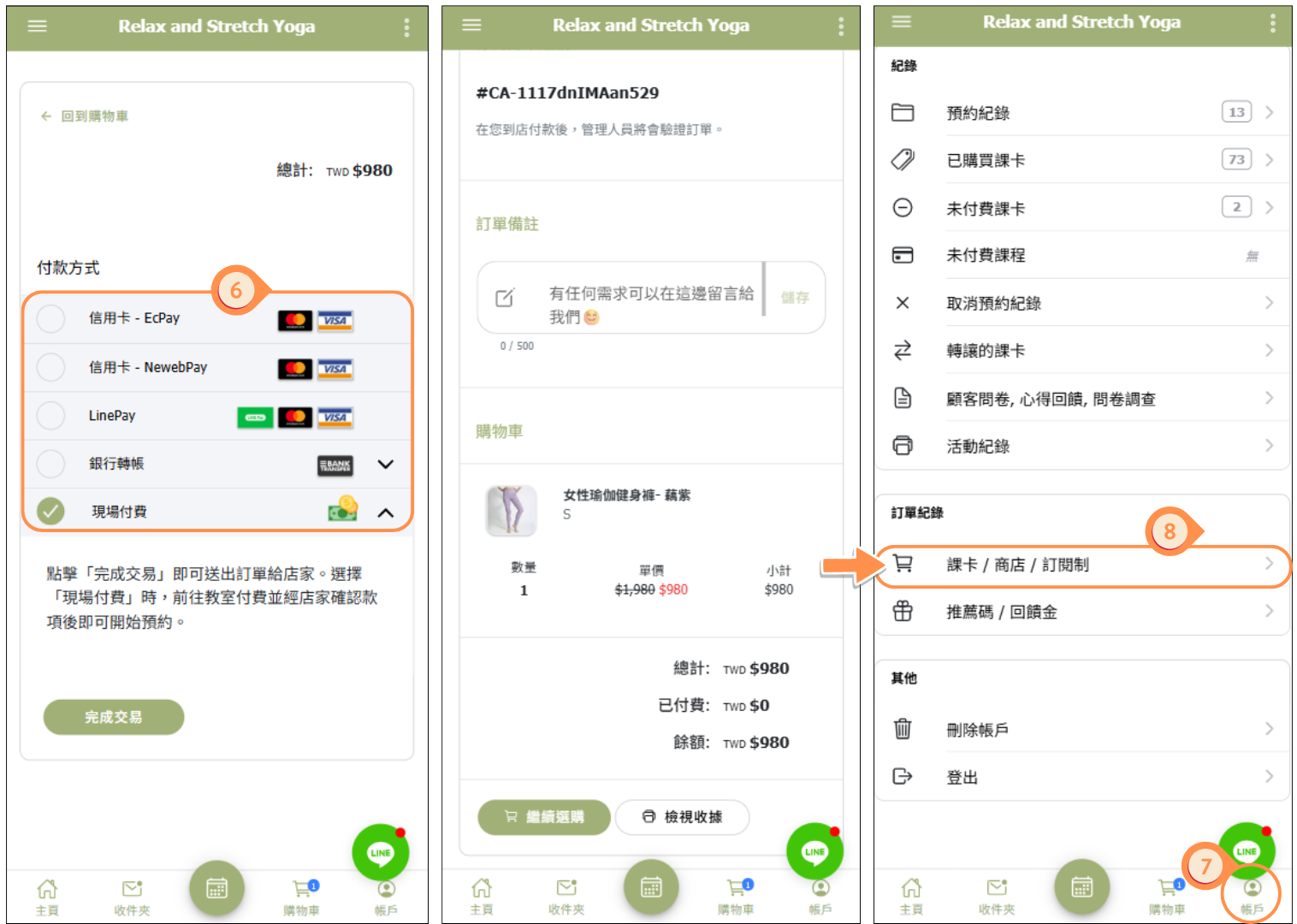 8. 選擇「課卡 / 商店 / 訂閱制」即可找到訂單紀錄