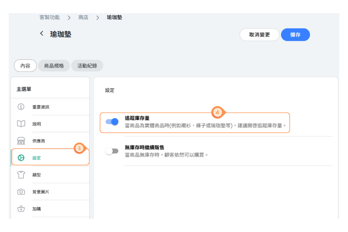 🟡 注意:未啟用追蹤的商品被視為永遠有庫存。