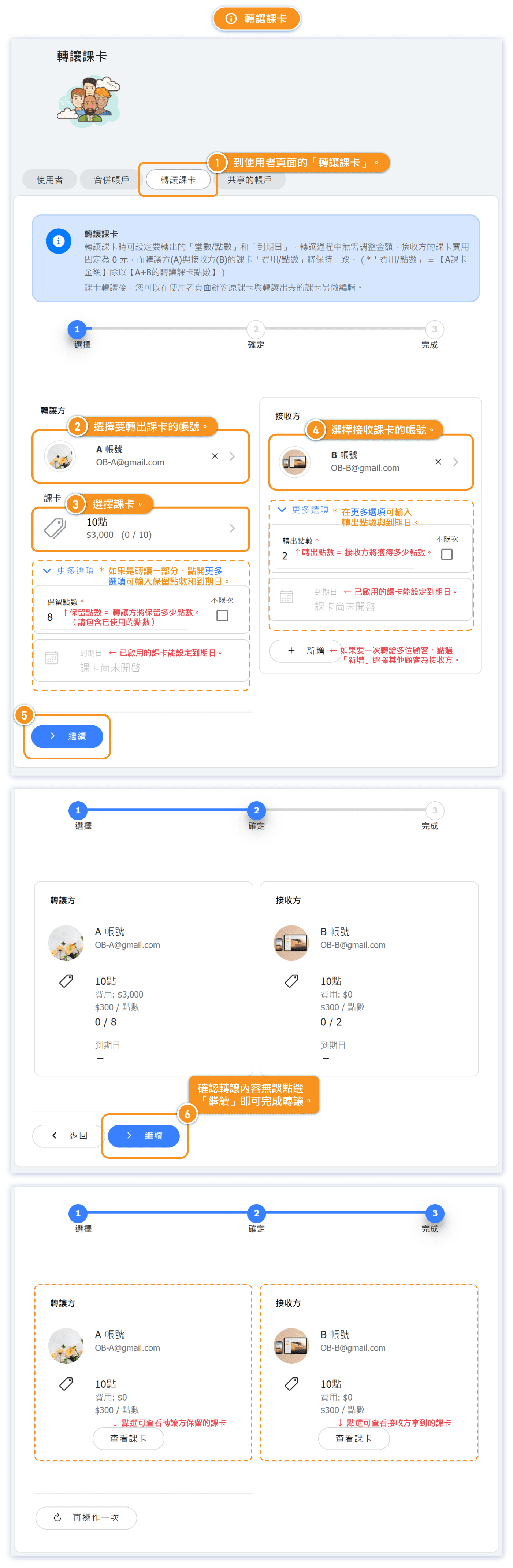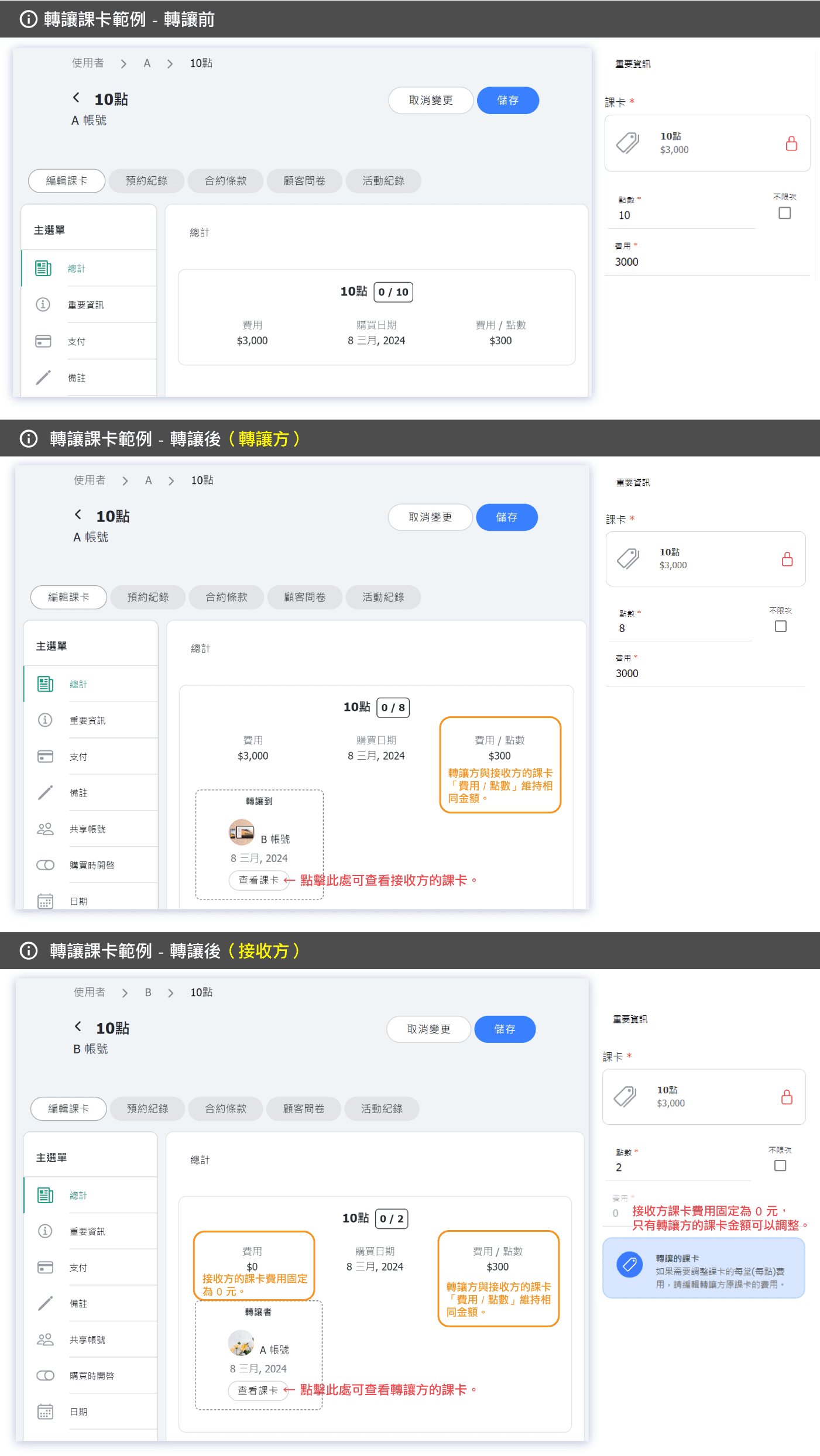 轉讓課卡功能說明