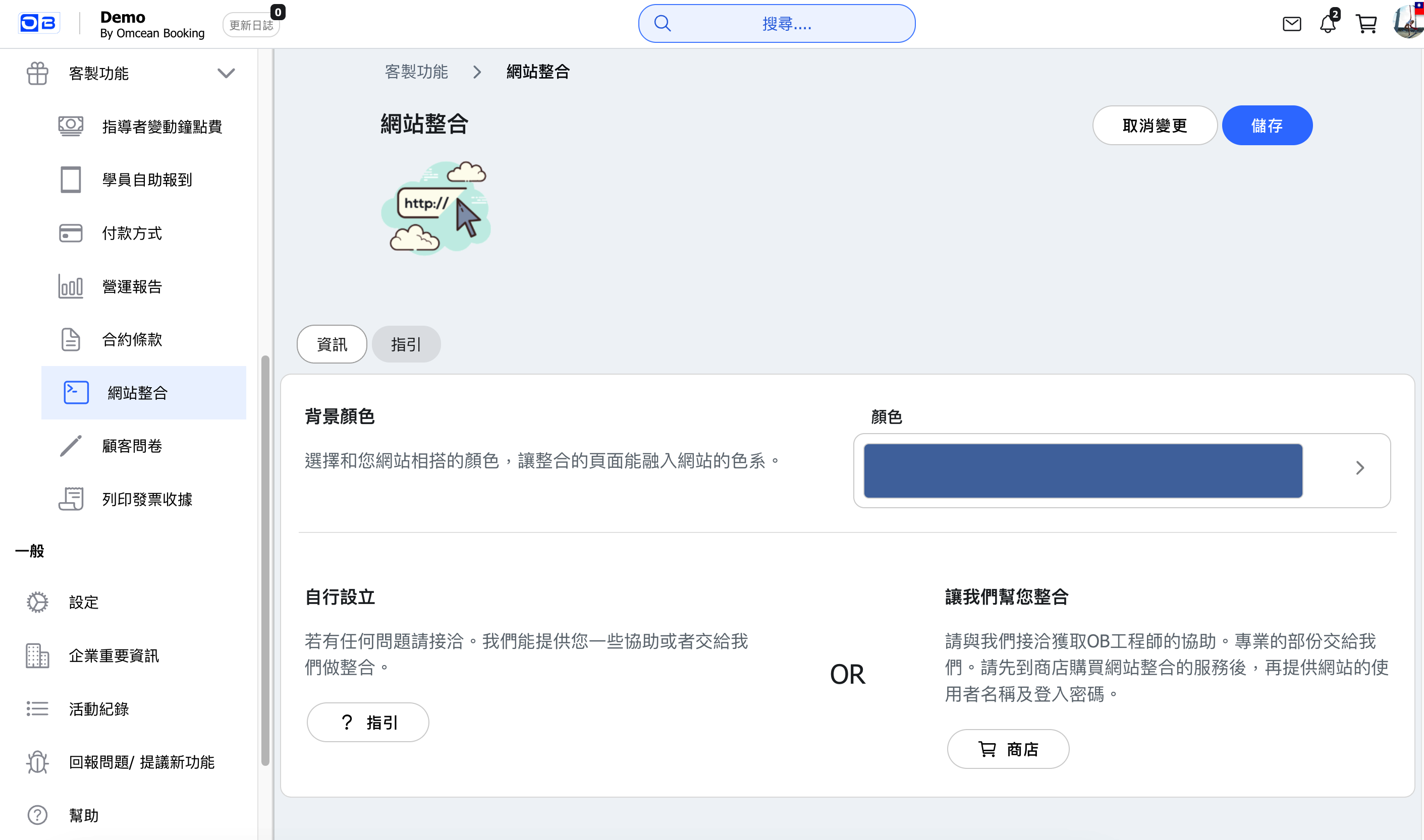 - 前往客製功能 → 網站整合