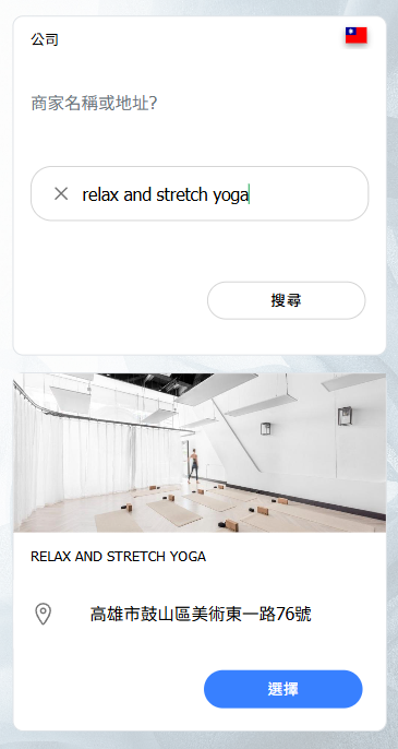 例如:教室名稱為Relax and Stretch Yoga,搜尋輸入Relax或完整名稱Relax and Stretch Yoga。