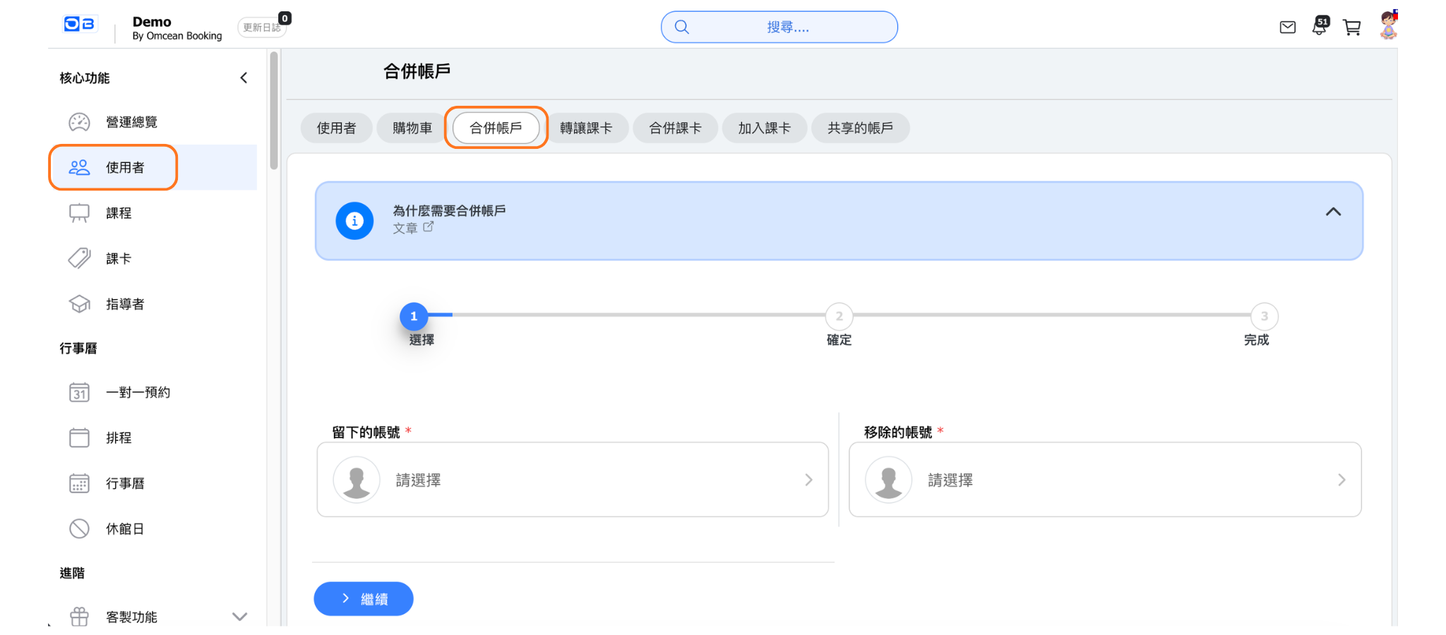 例如:教室網址為https://www.omceanbooking.com/demo,則搜尋demo。