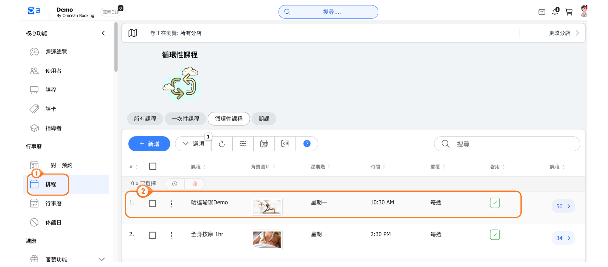 2. 循環性課程設定了結束日,或期課尚未安排課程。