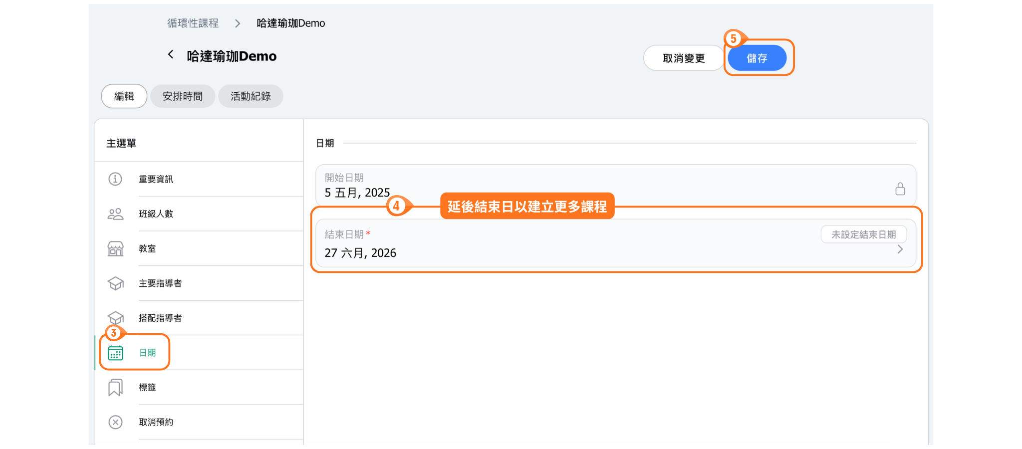 【解決方法】將循環課程的結束日期設定往後延,以建立更之後的課程。或確認期課已建立課程。